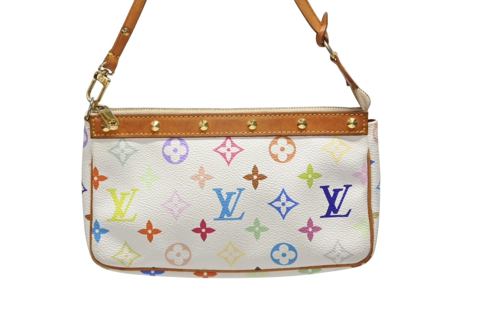 LOUIS VUITTON ルイヴィトン ポシェット アクセソワール アクセサリーポーチ M92649 ホワイト マルチカラー 村上隆 美品 中古 4b008770