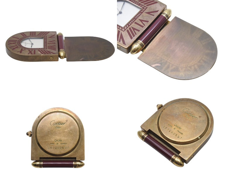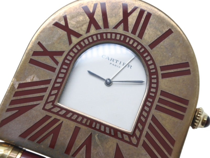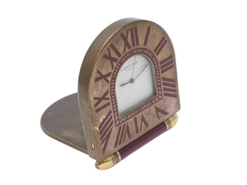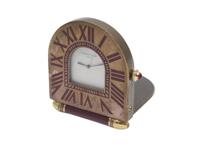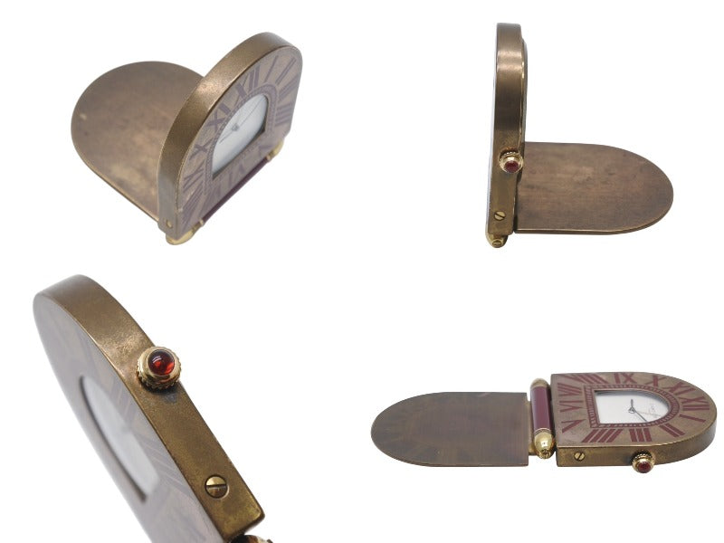 CARTIER カルティエ 折り畳み式 トラベル クロック A10 置き時計 357203697 フランス製 ワインレッド アンティークゴールド金具 美品 中古