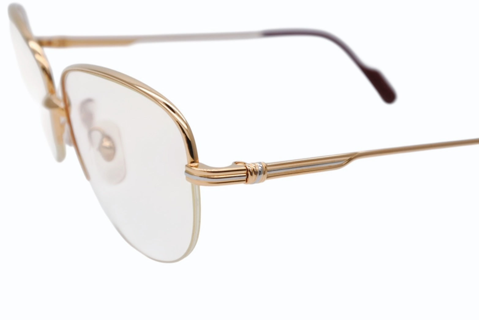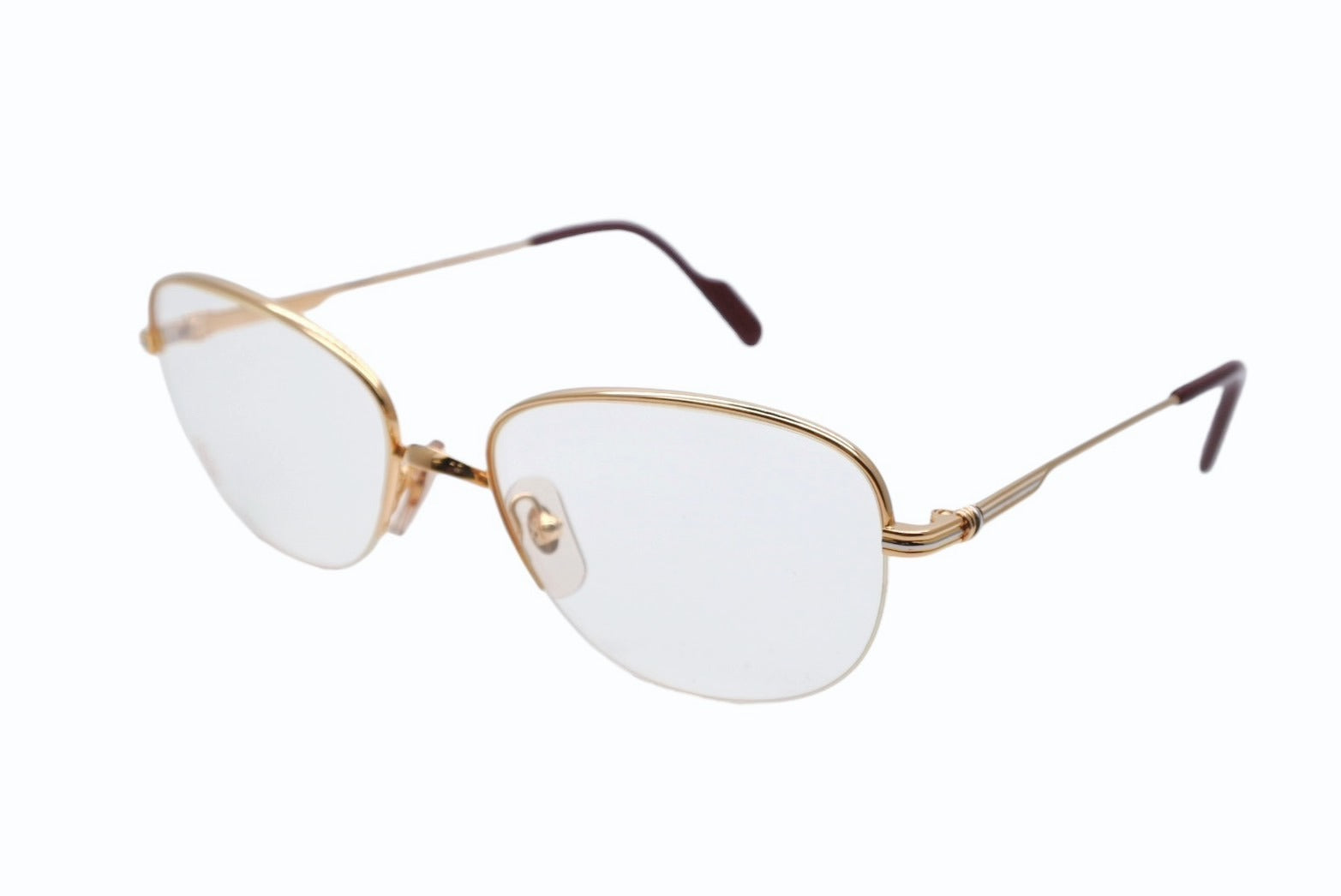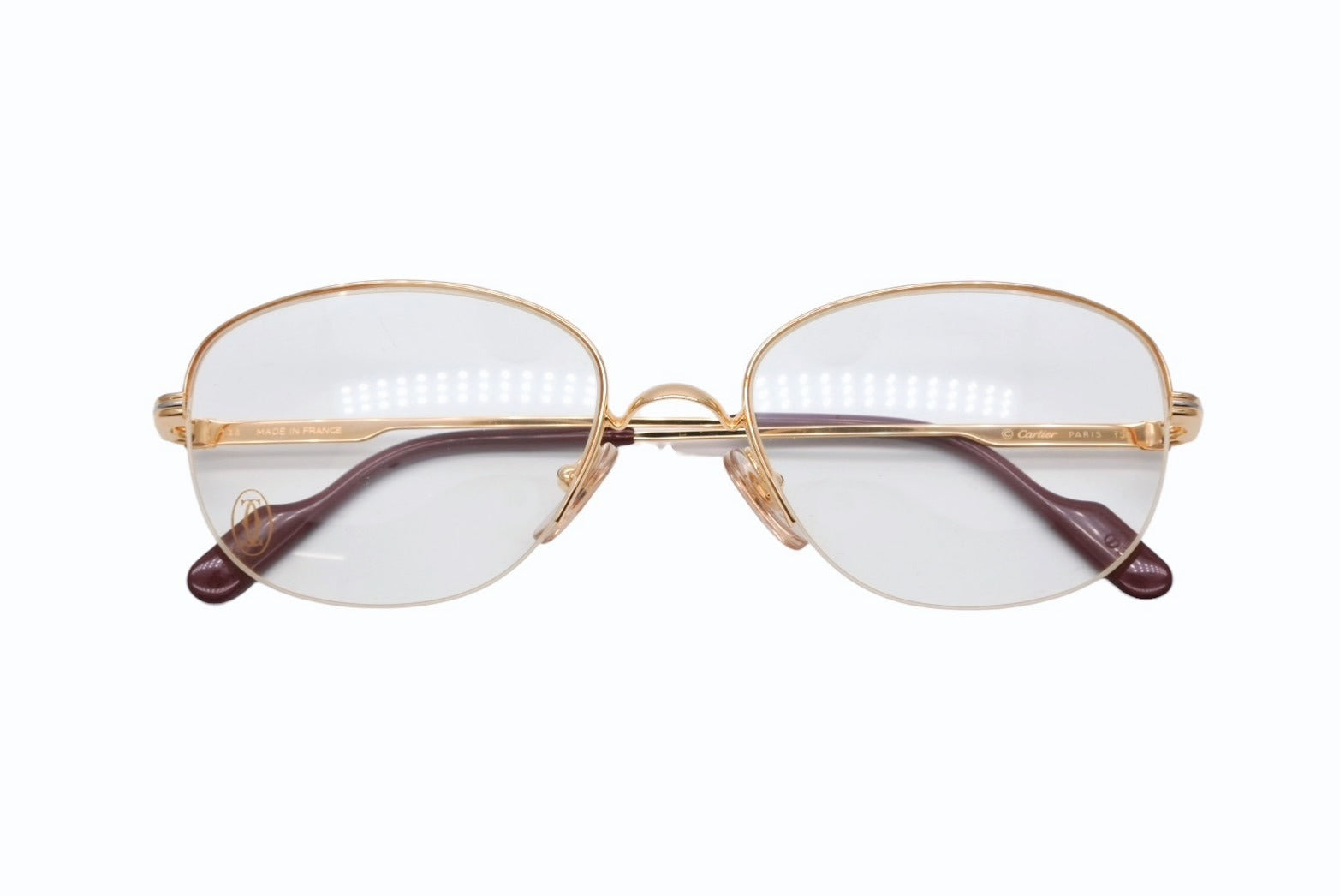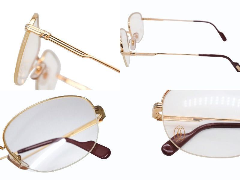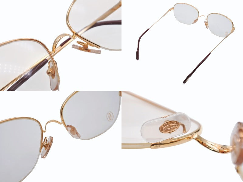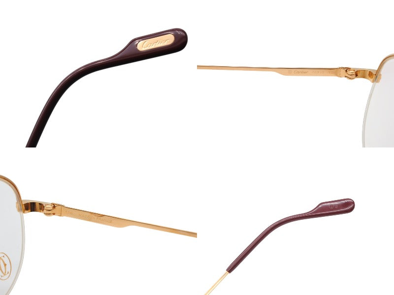 極美品 CARTIER カルティエ サングラス メガネ サイズ53□18 135 ボルドー クリア ゴールド シルバー メタル GP 中古 4b009479