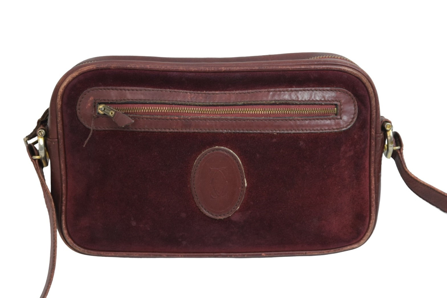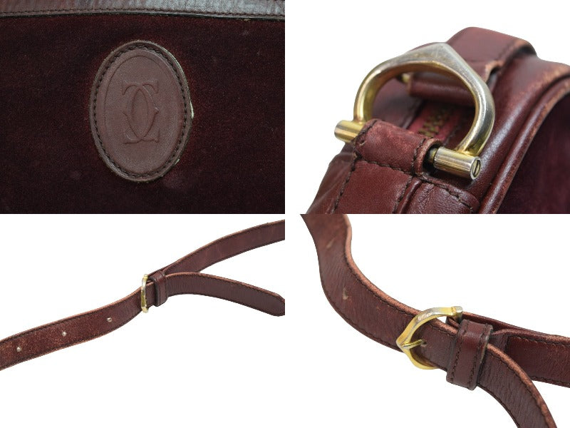 CARTIER カルティエ ショルダーバッグ 斜め掛け マストライン スウェード レザー ボルドー ゴールド金具 美品 中古 54002