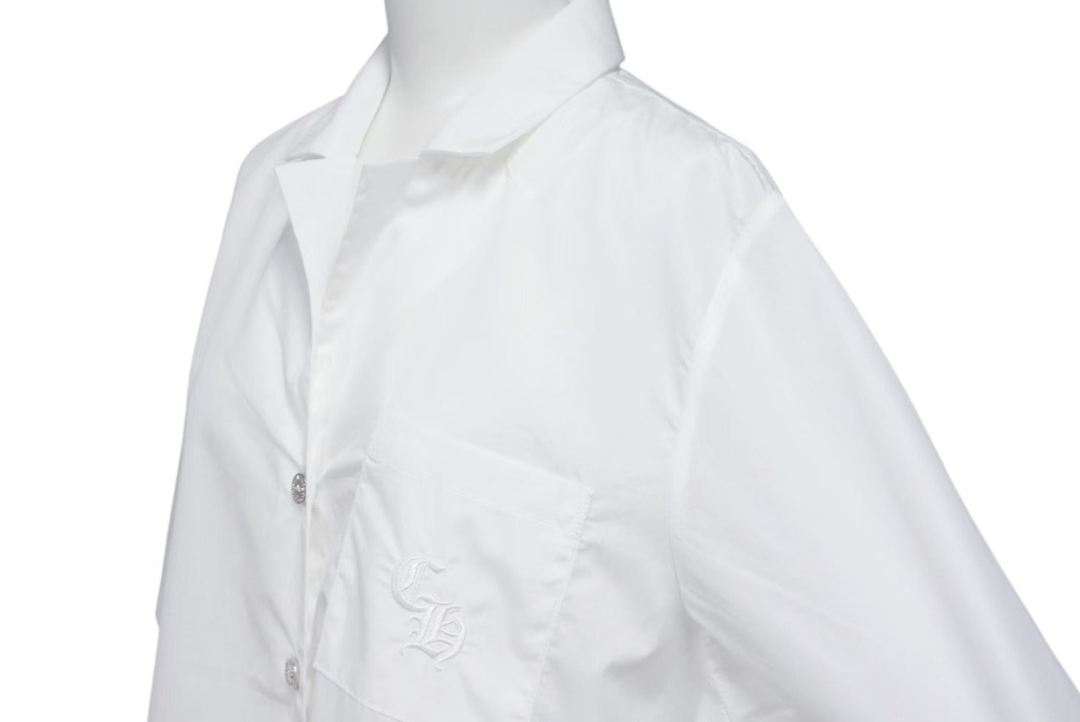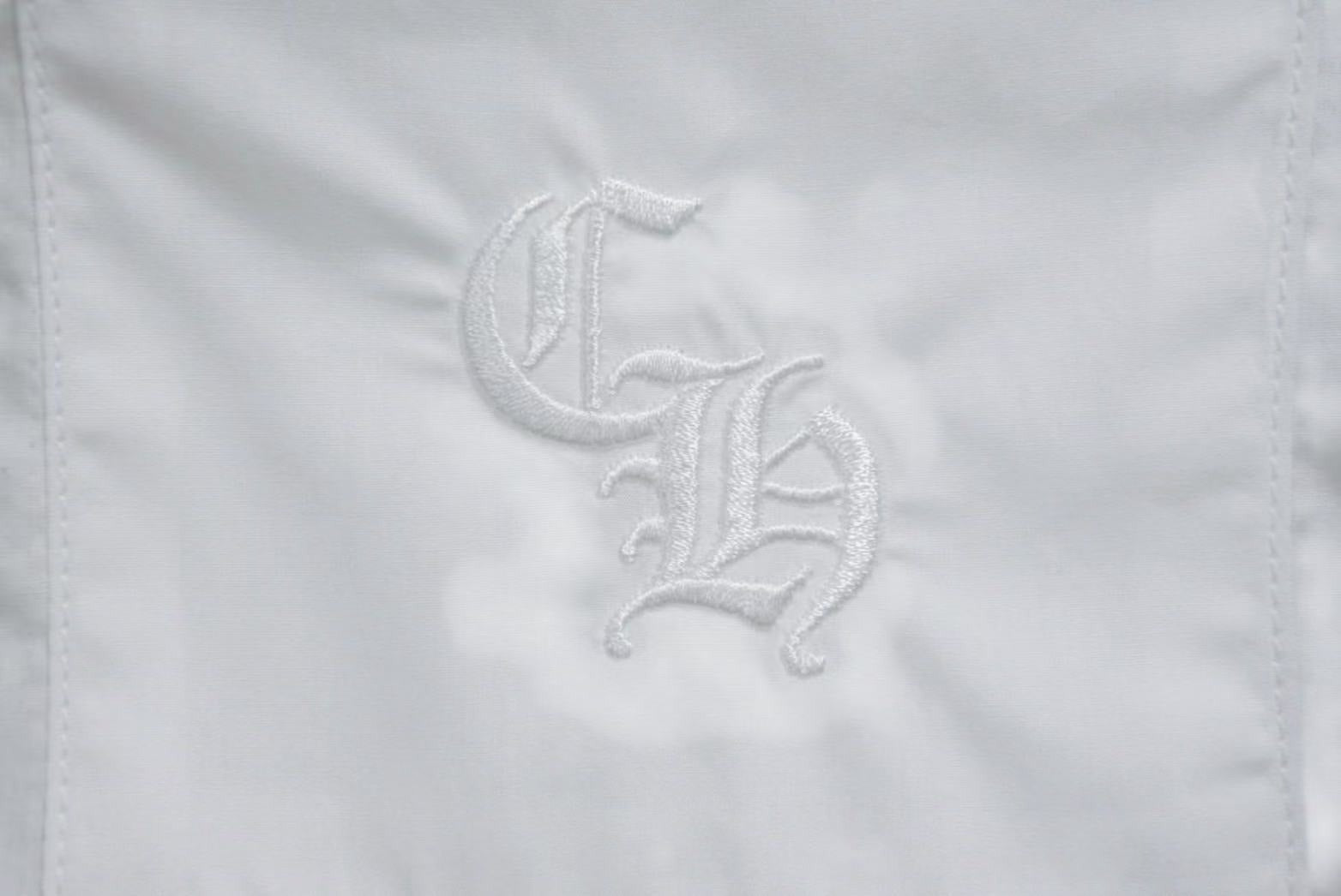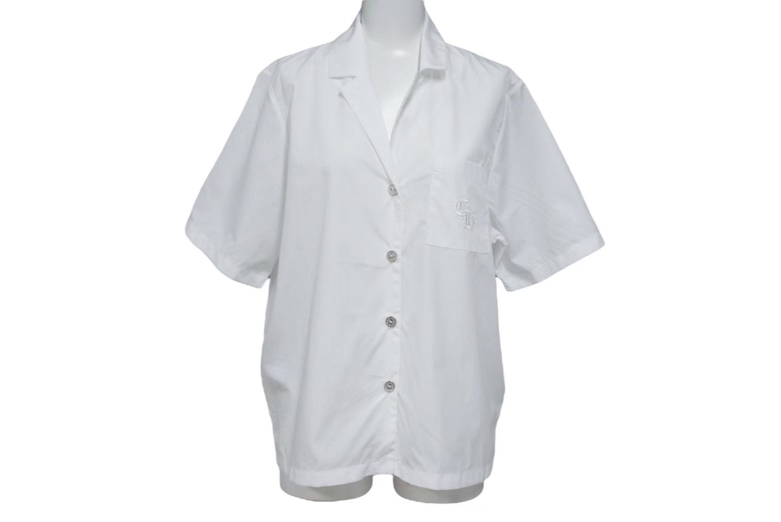 同色で施されたCH刺繍が魅力的なオープンカラーシャツです。