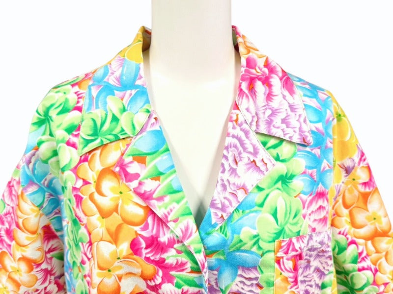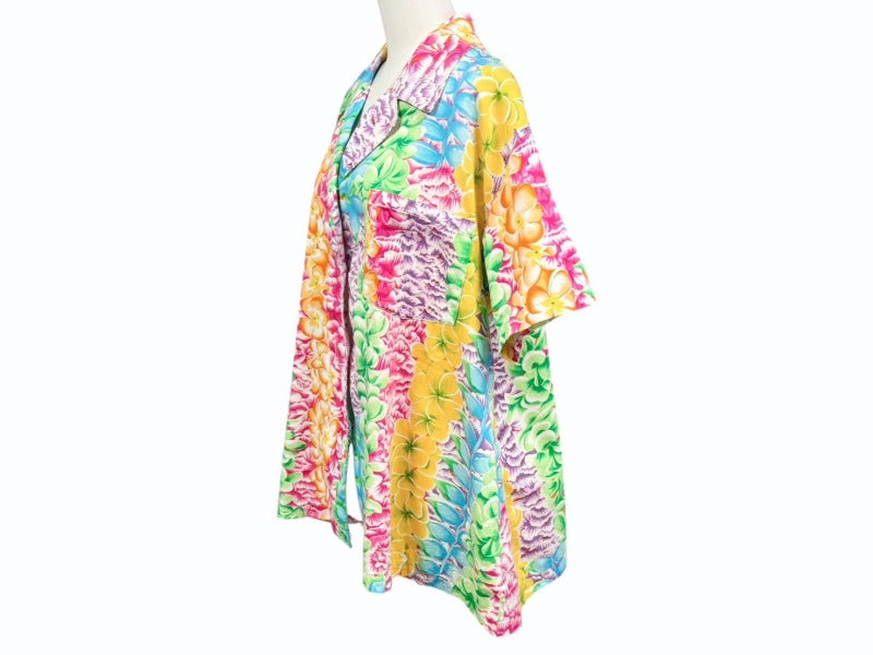 色鮮やかな総柄プリントが華やかな半袖シャツです。