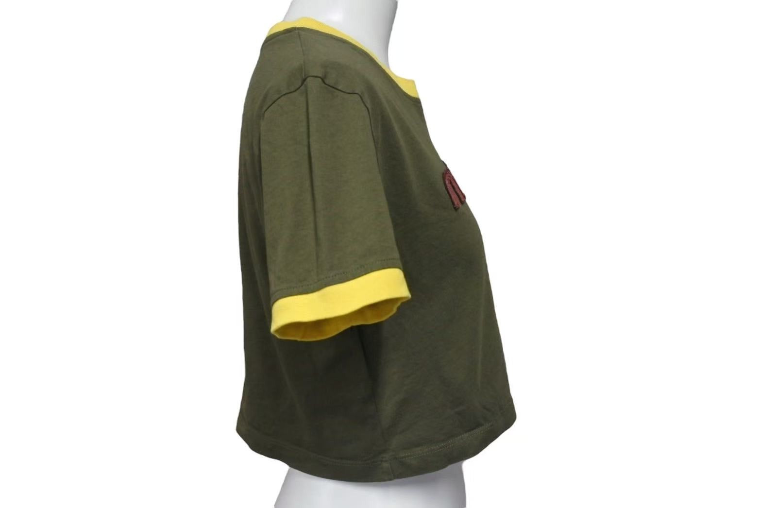 クロップド丈とロゴ刺繍が目を惹くアイテムです。