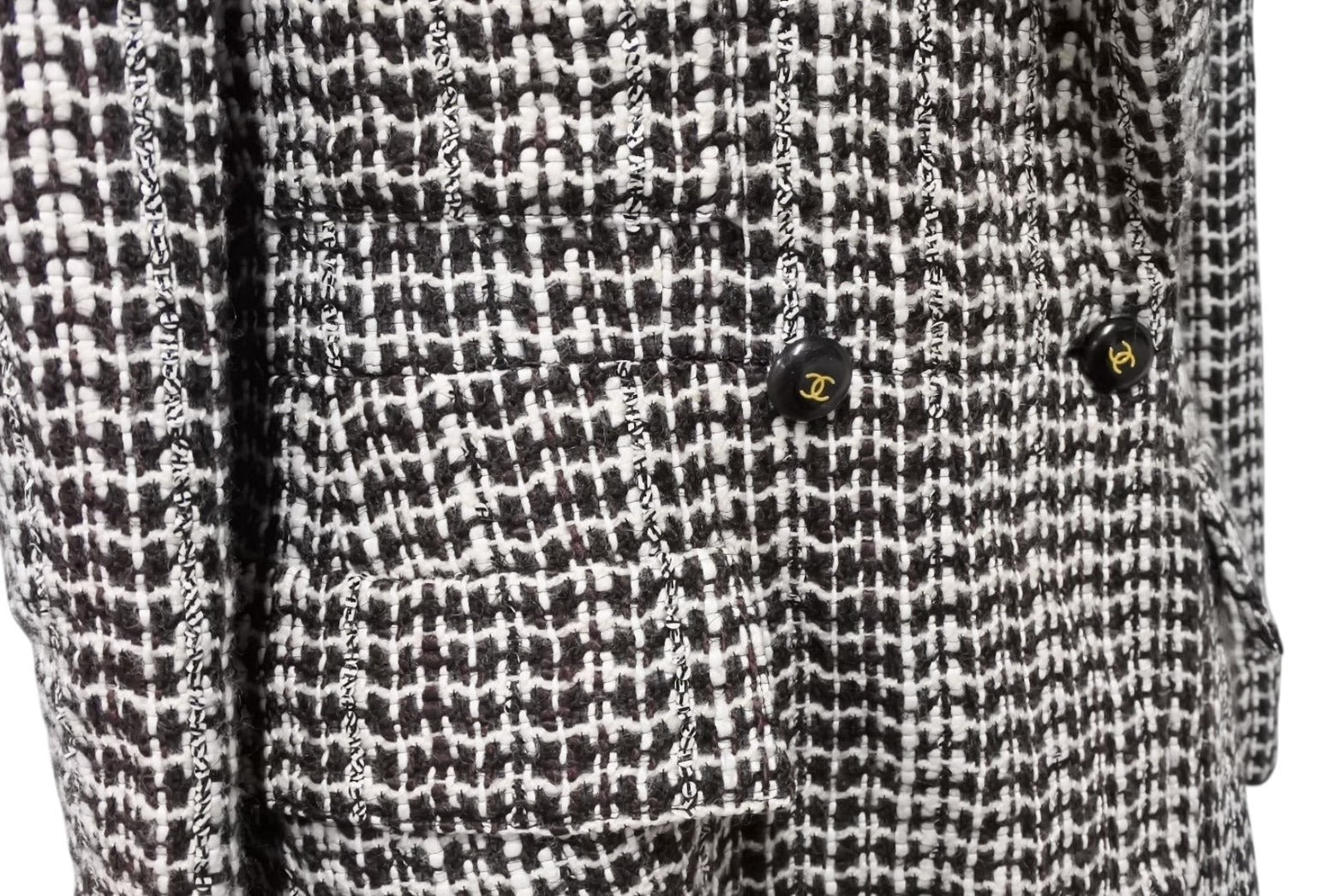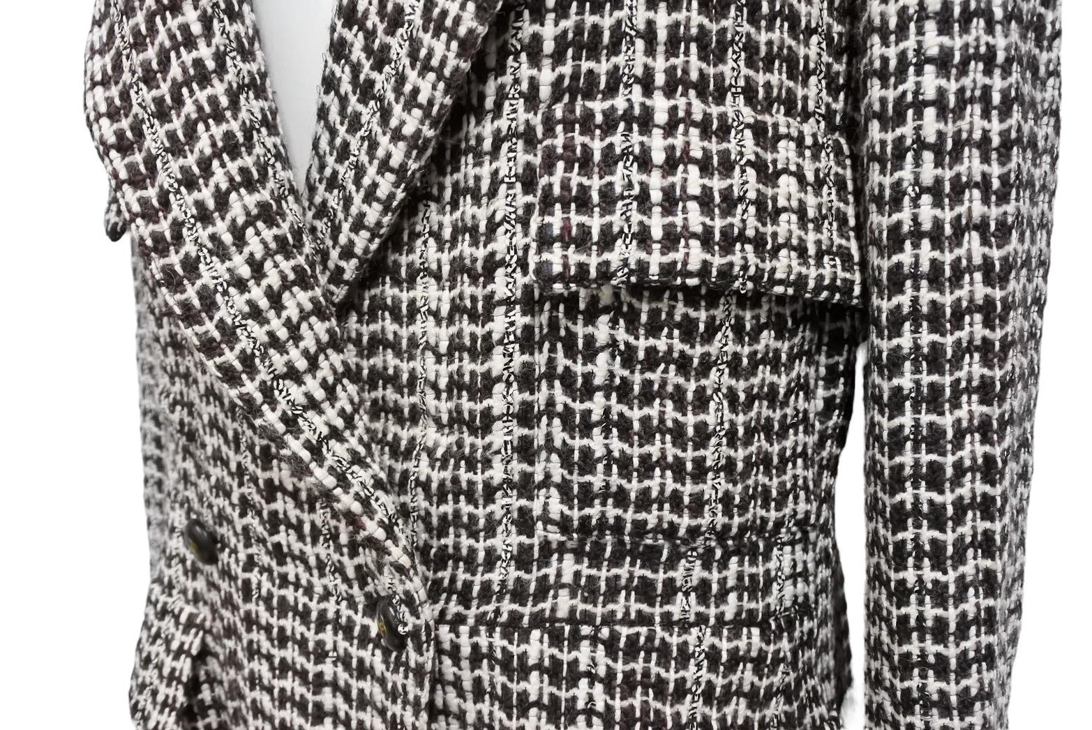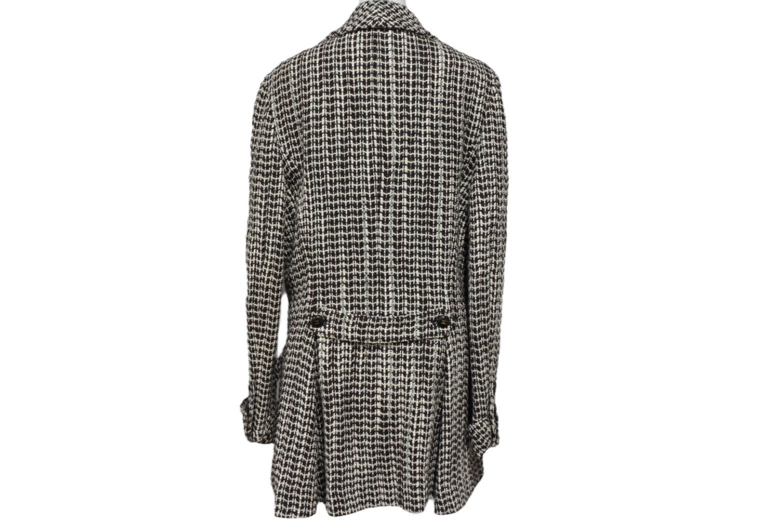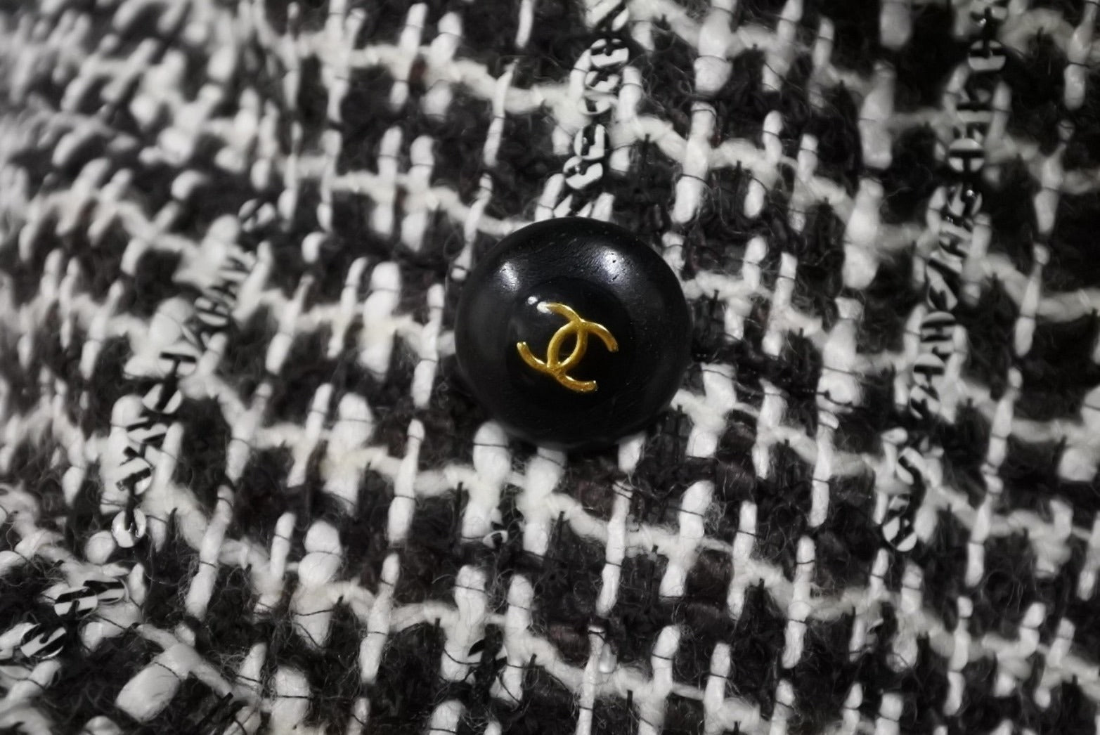ブラウンとホワイトのツイードジャケットで上品さを感じられるアイテムです。