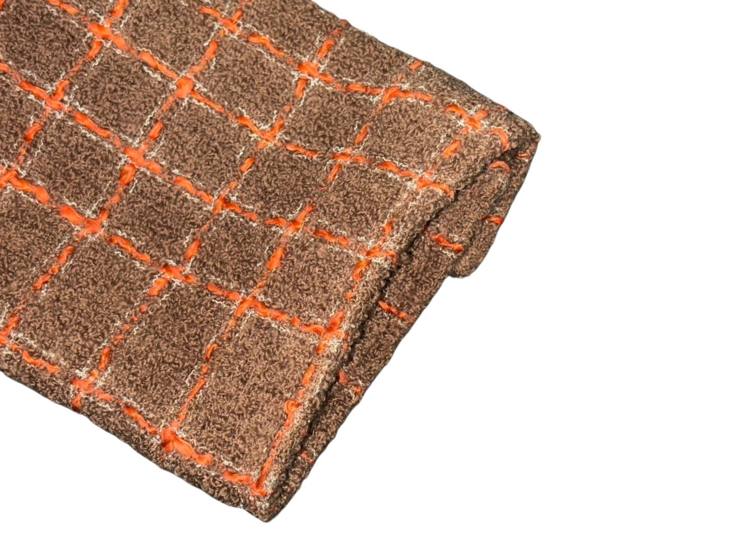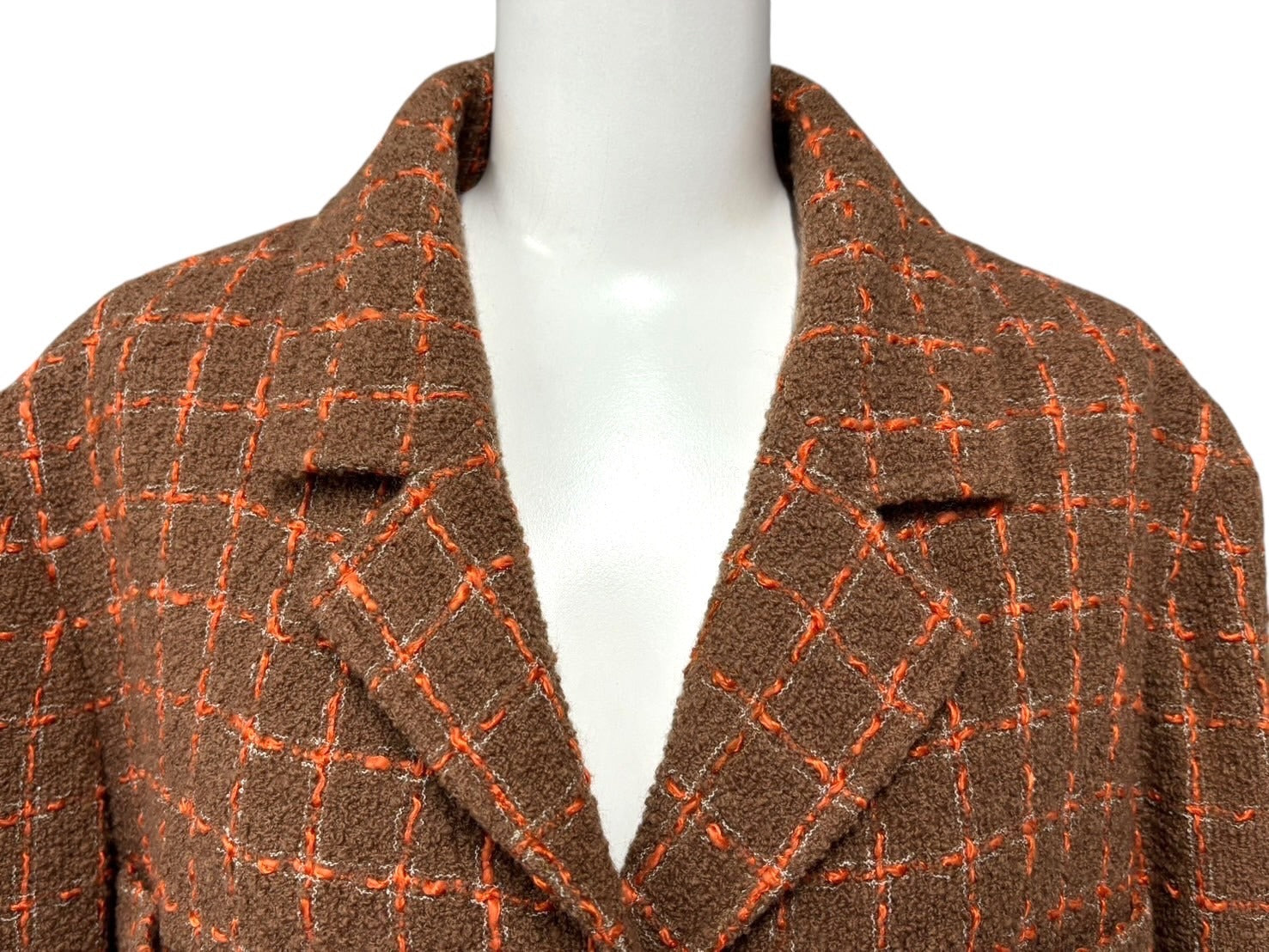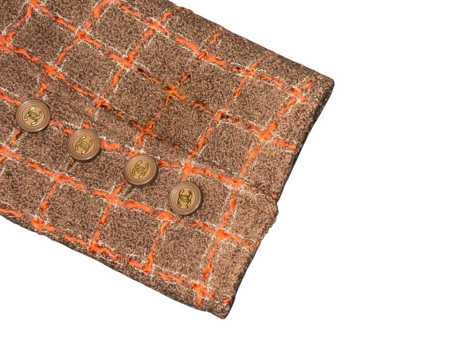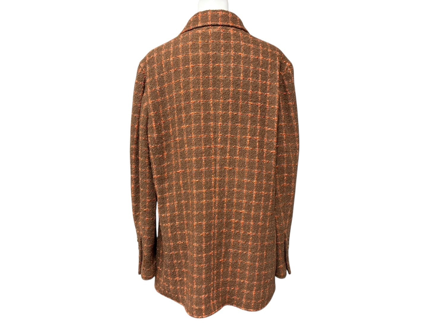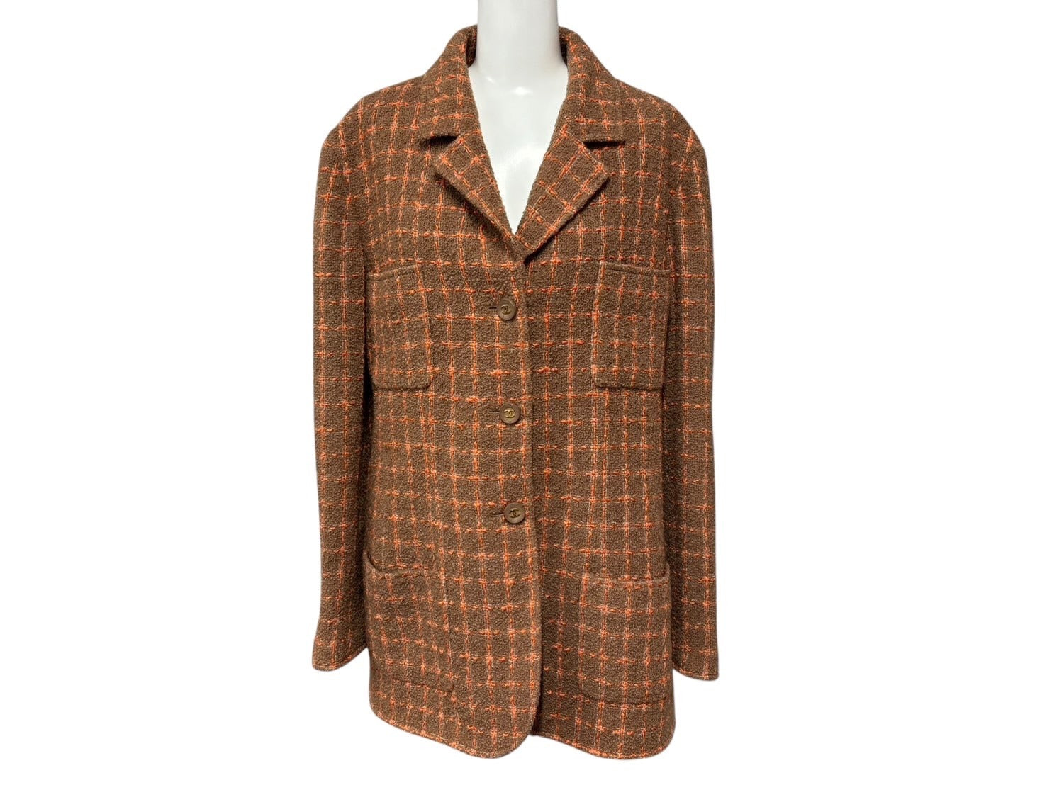 可愛らしいチェック柄が特徴的なツイードジャケットになります。