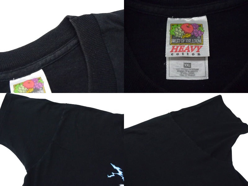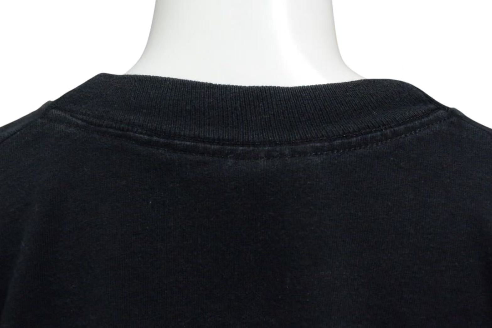 フロント、右肩付近にピンホールあり。フロント下部に一部シミあり。背面一部シミあり。全体的に少々色落ち、毛羽立ちあり。丈形崩あり。プリントにひび割れあり。その他使用感の少ない状態です。