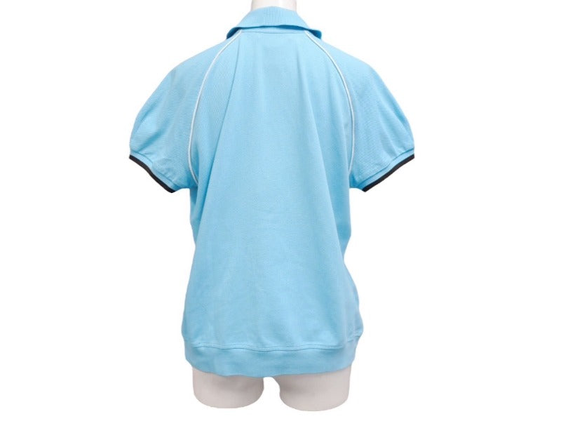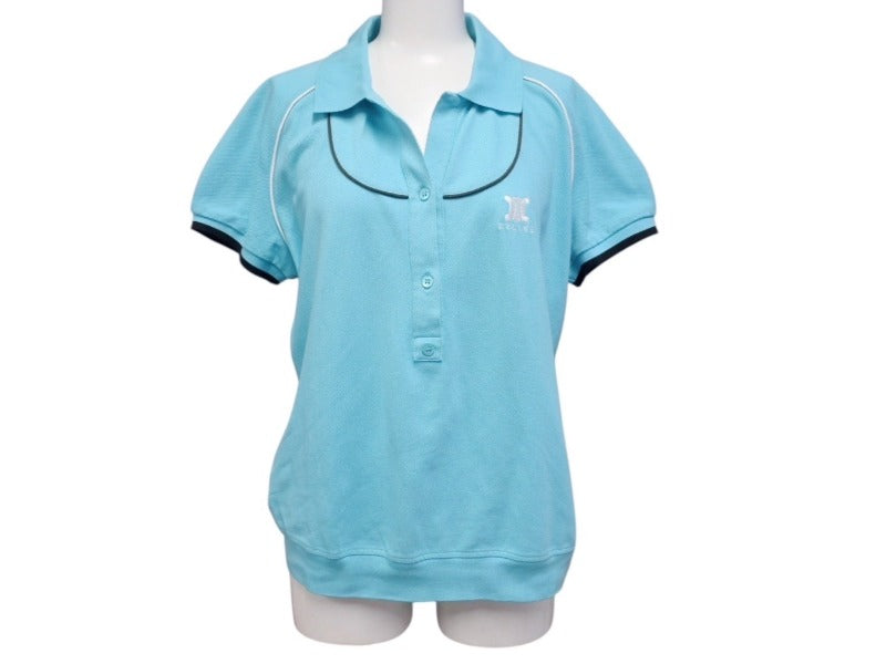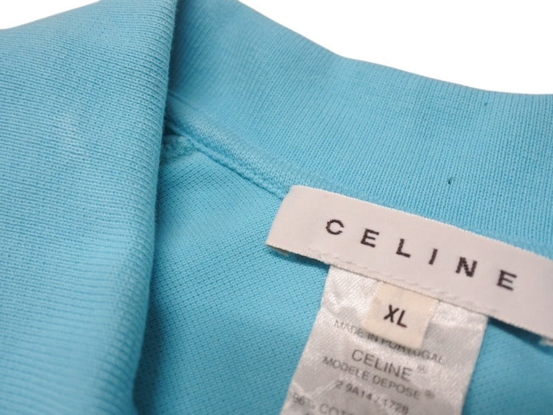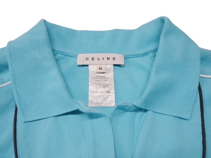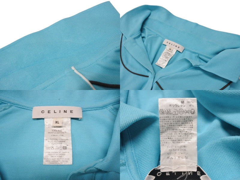 CELINE セリーヌ 半袖ポロシャツ トップス 2 9A14 サイズXL ブルー ブラウン ホワイト ロゴ刺繍 美品 中古 4b004473