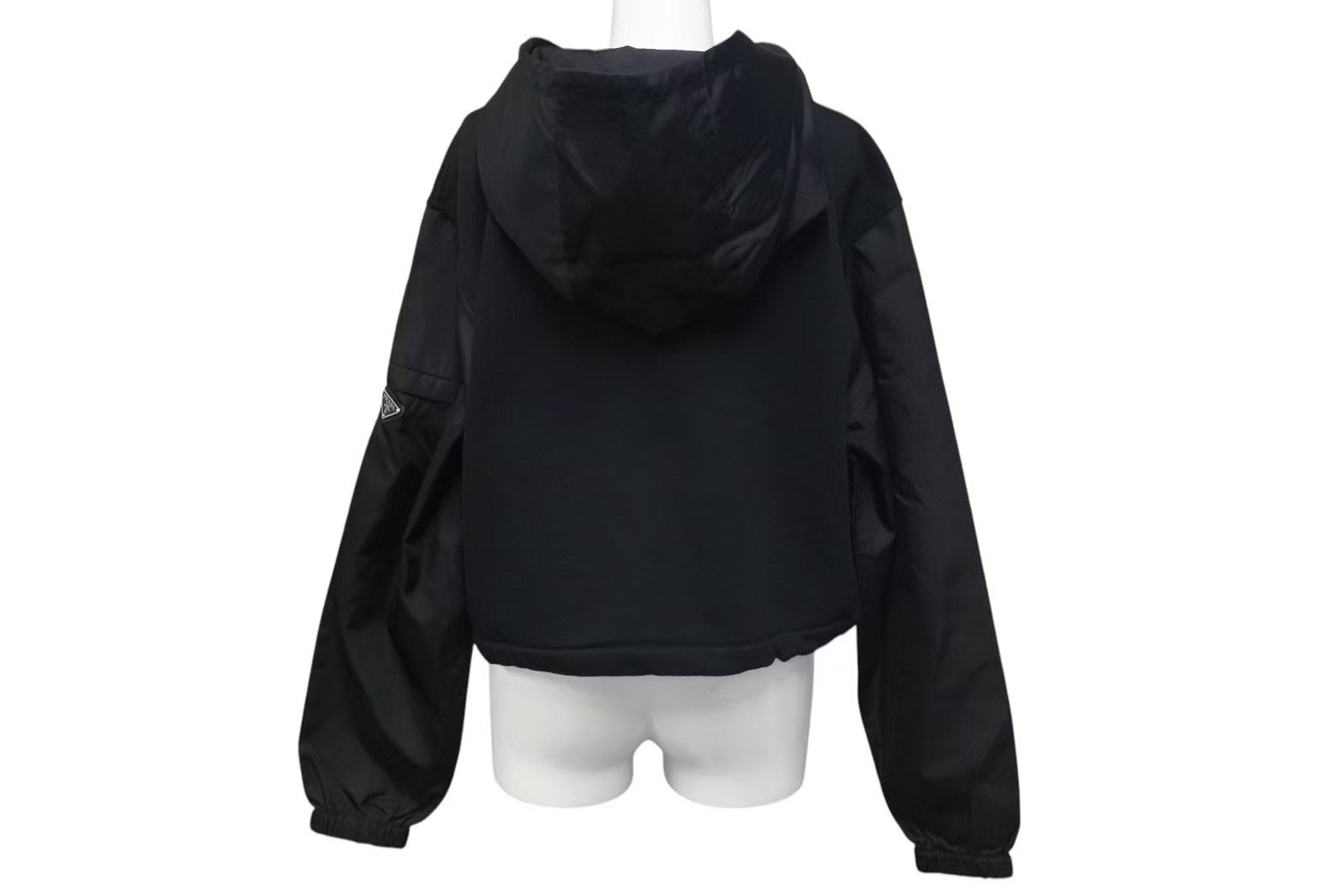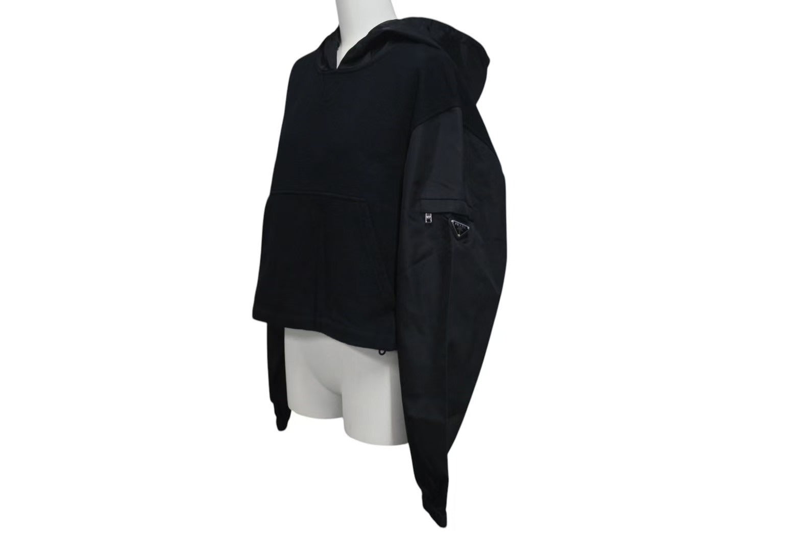 極美品 PRADA プラダ パーカー 134643 サイズL トライアングルロゴ クロップド丈 リナイロン コットン ブラック 21AW 中古 4c074130
