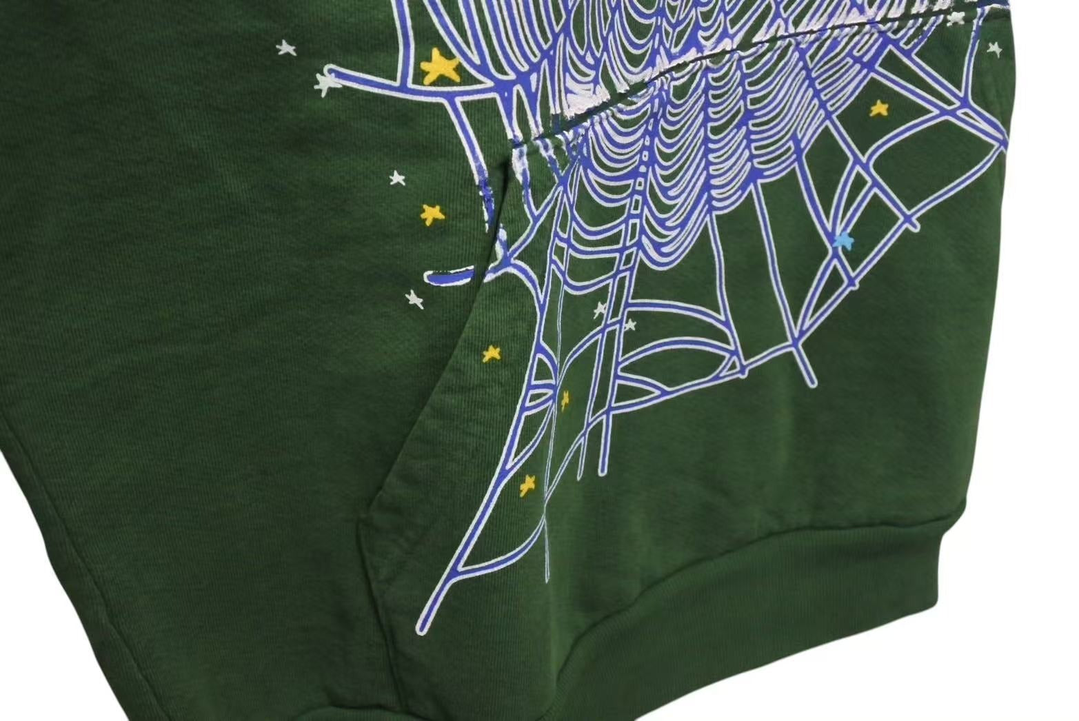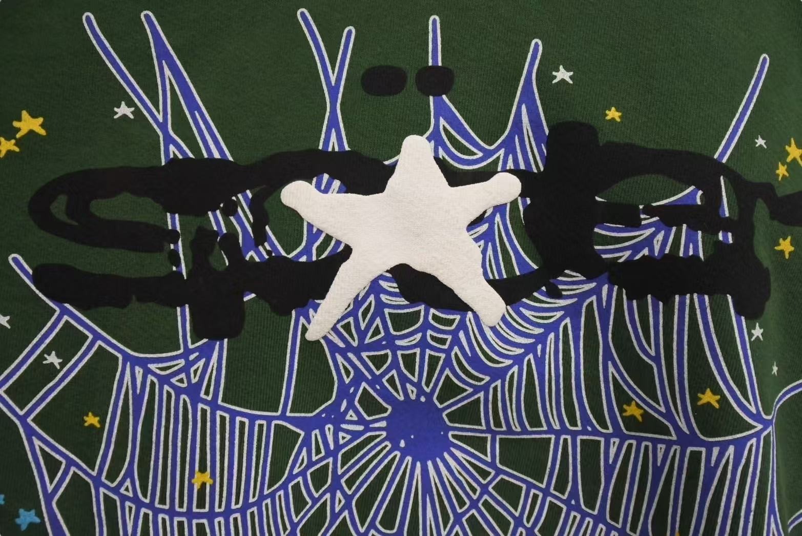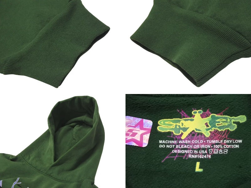 新品同様 SP5DER スパイダー Web Hoodie ウェブ フーディー パーカー 23SS サイズL Young Thug プリント グリーン 中古 4c075161