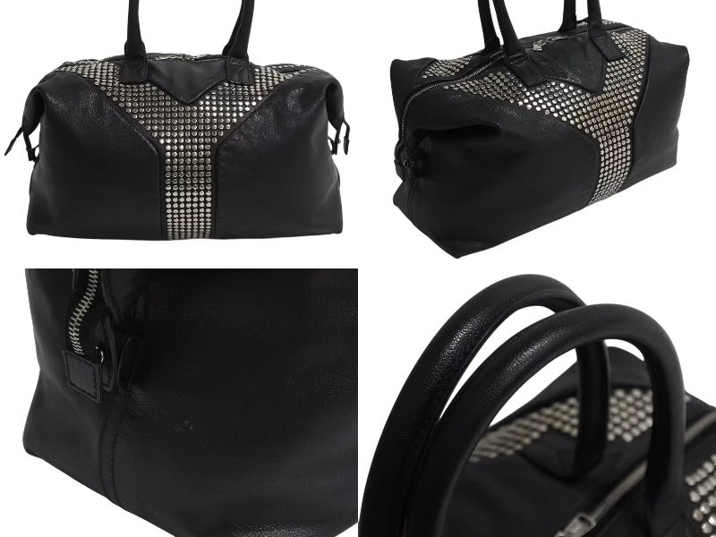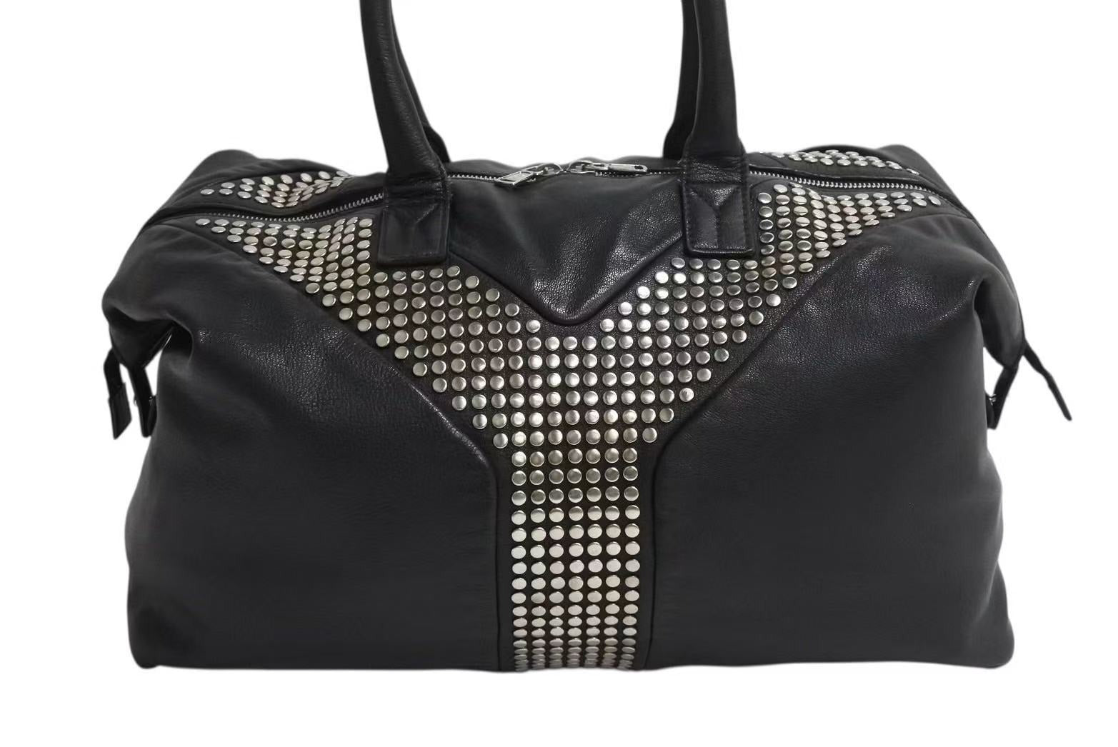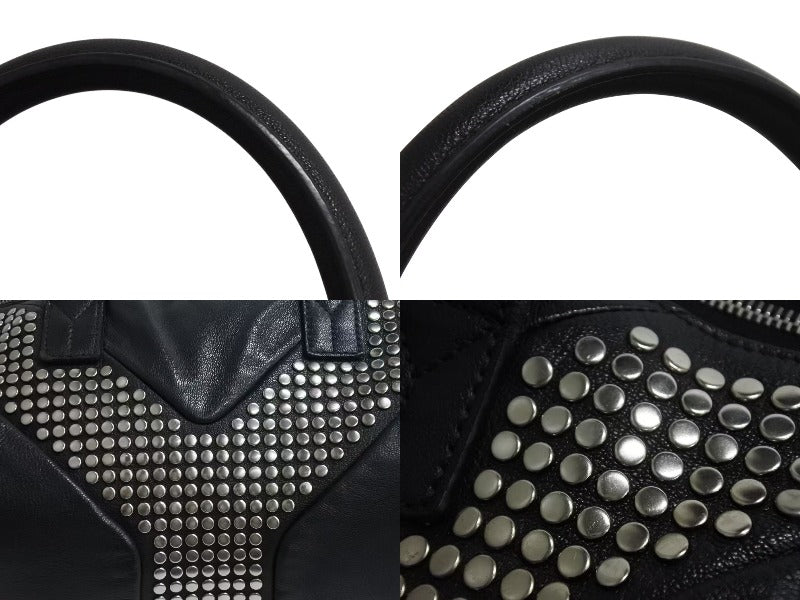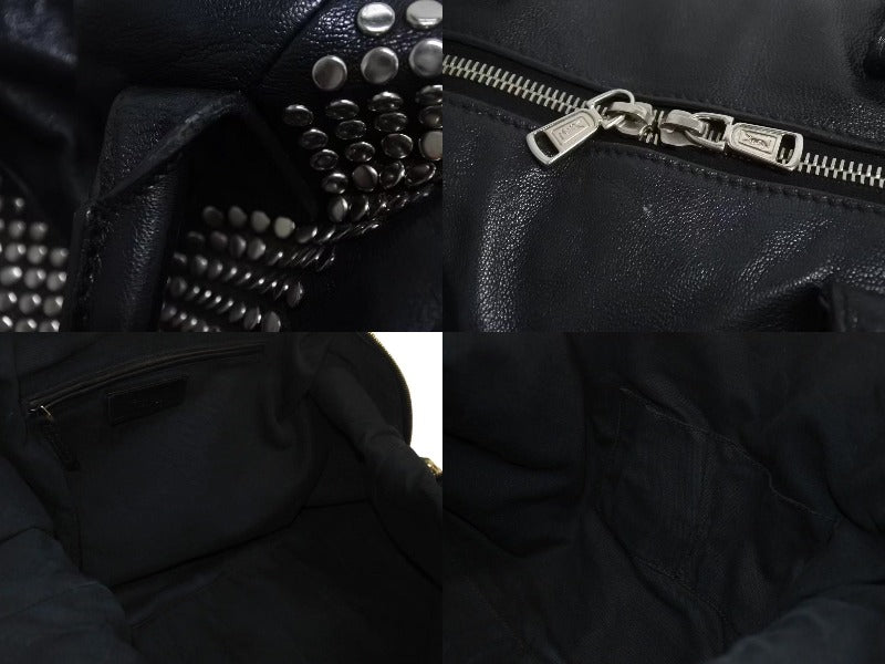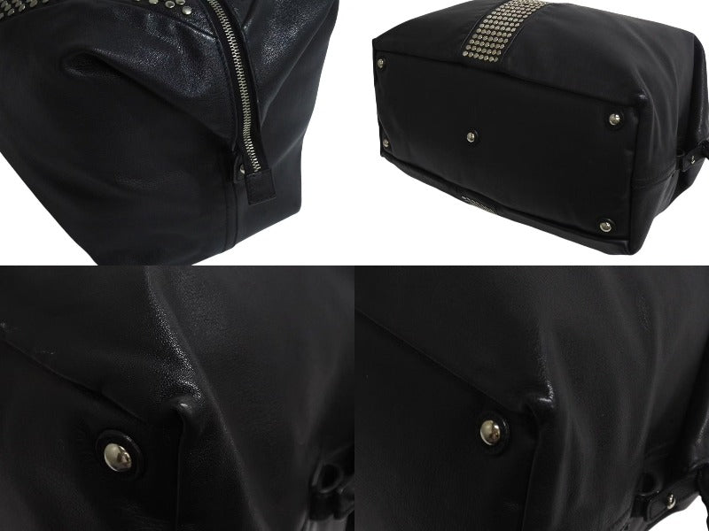 黒のレザーバッグにスタッズが打ってあるデザインです。