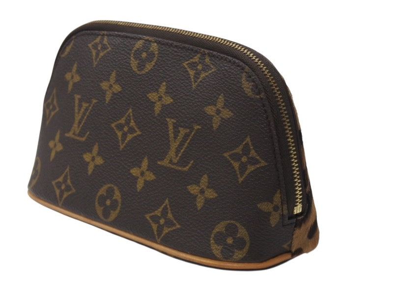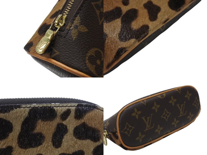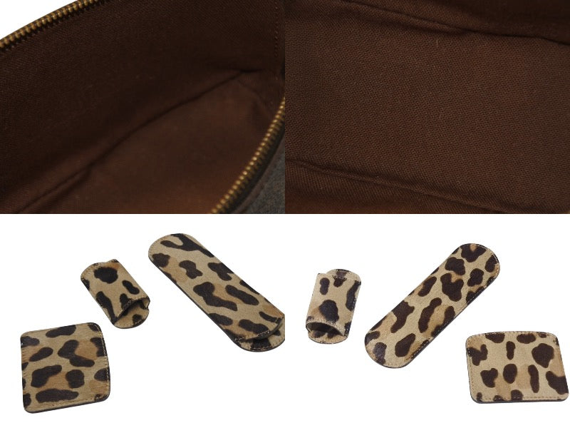 アズディンアライア アルマの付属ポーチで、ポーチ、コーム、コームケース、コンドームケース、簪ケースがセットになったアイテムです。ハラコ素材のモノグラム レオパードがとても可愛らしいアイテムです。