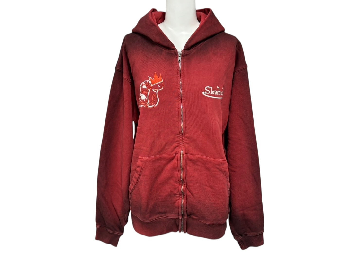 新品未使用 SLOWBUCKS スローバックス ジップアップフーディー パーカー サイズS レッド グラデーション 刺繍 中古 4b009438