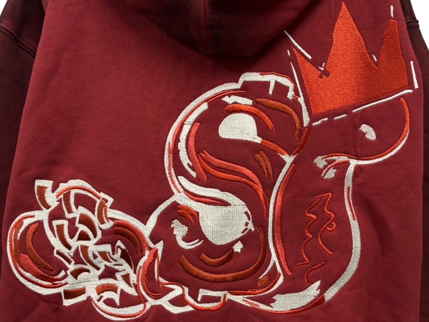 新品未使用 SLOWBUCKS スローバックス ジップアップフーディー パーカー サイズL レッド グラデーション 刺繍 中古 4b009440