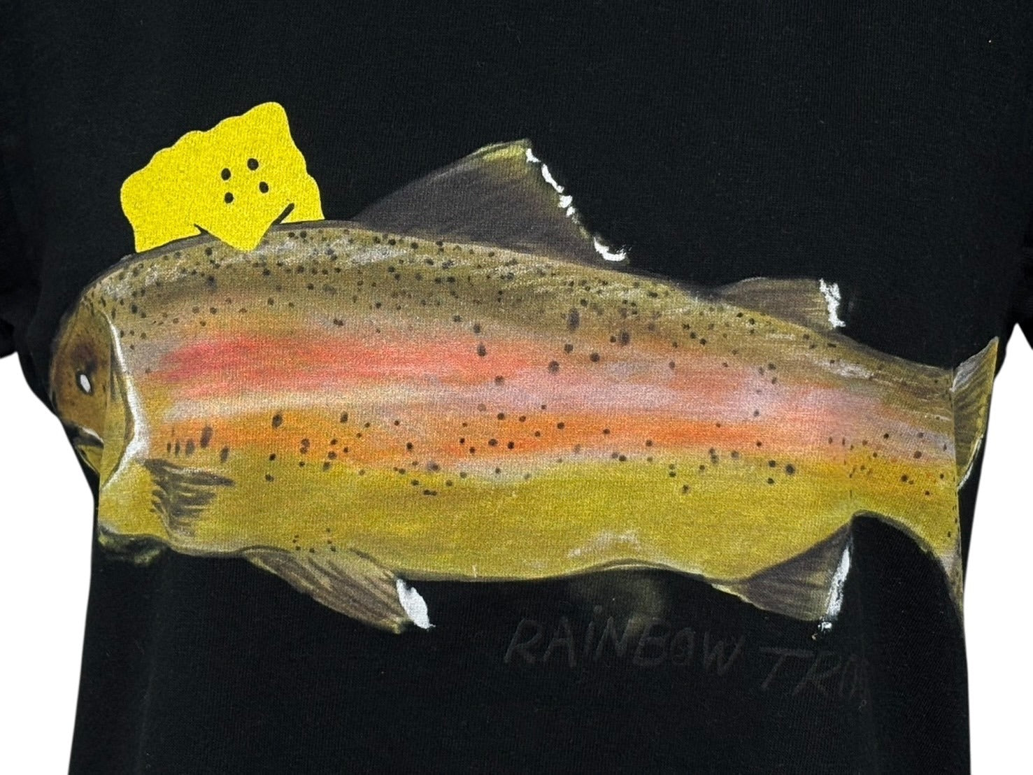 トラウトとクッキーになったRAINBOWYをプリントしたクロップドTシャツ。