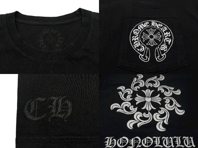 CHROME HEARTS クロムハーツ ホノルル限定 半袖Tシャツ サイズM ホースシュー CHプラス プリント ブラック ホワイト 美品 中古 4b008754