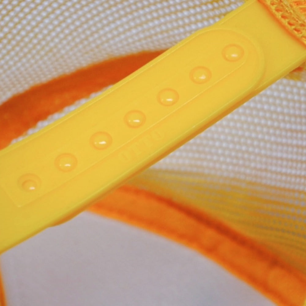 フロントに施されたパフプリントが可愛らしいメッシュ トラッカーキャップです。