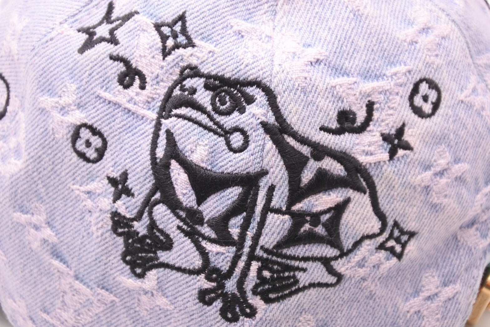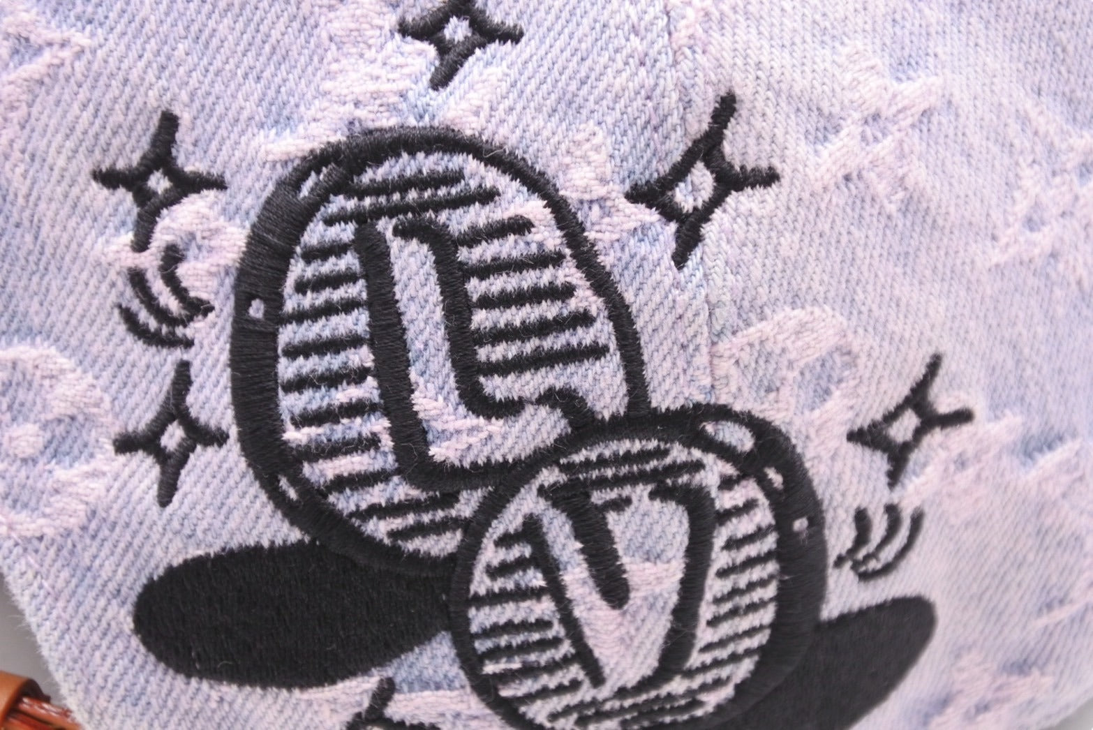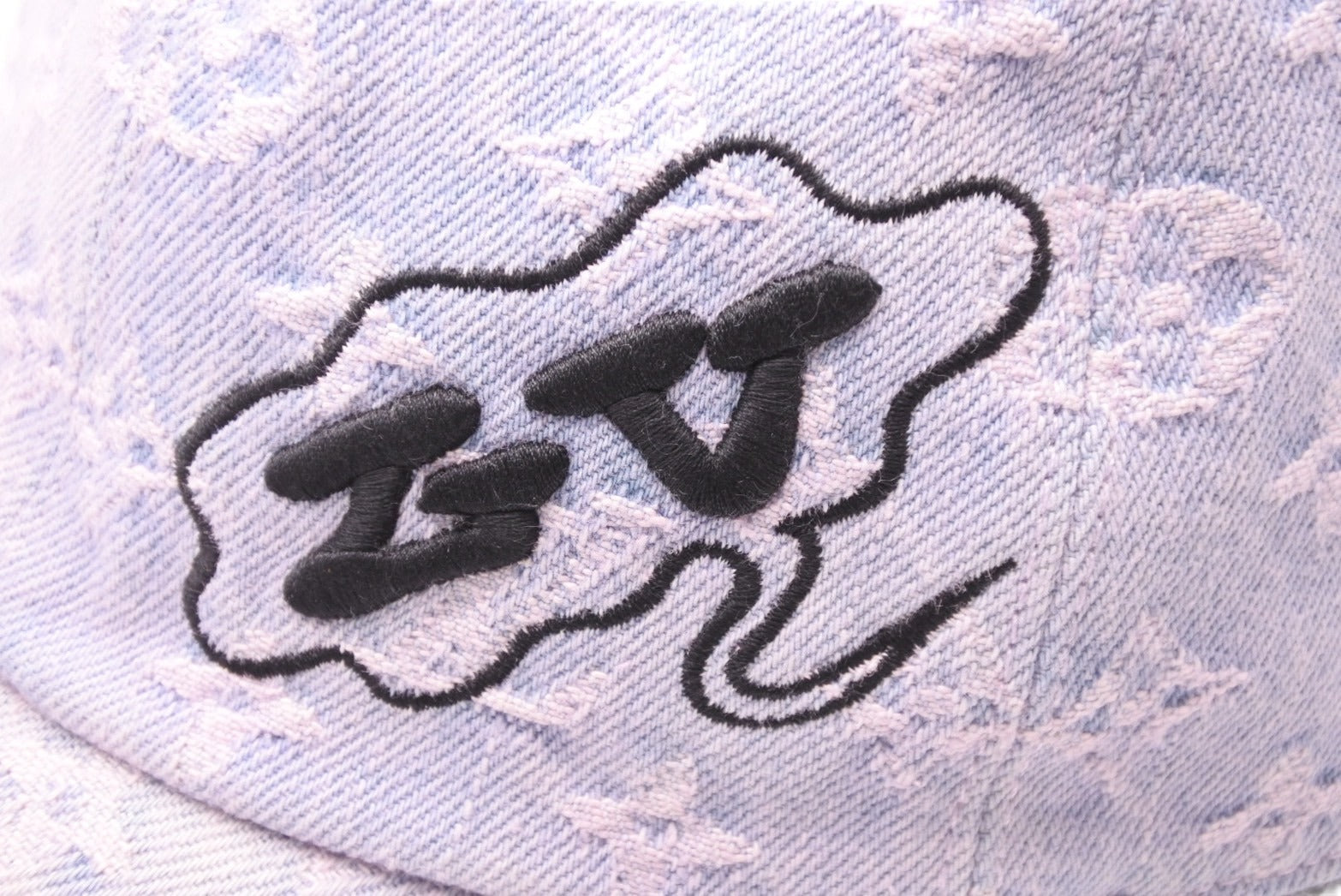 カートゥーンの刺繍でアスレティックスタイルに遊び心溢れるひねりを効かせたキャスケットデニムモノグラムです。