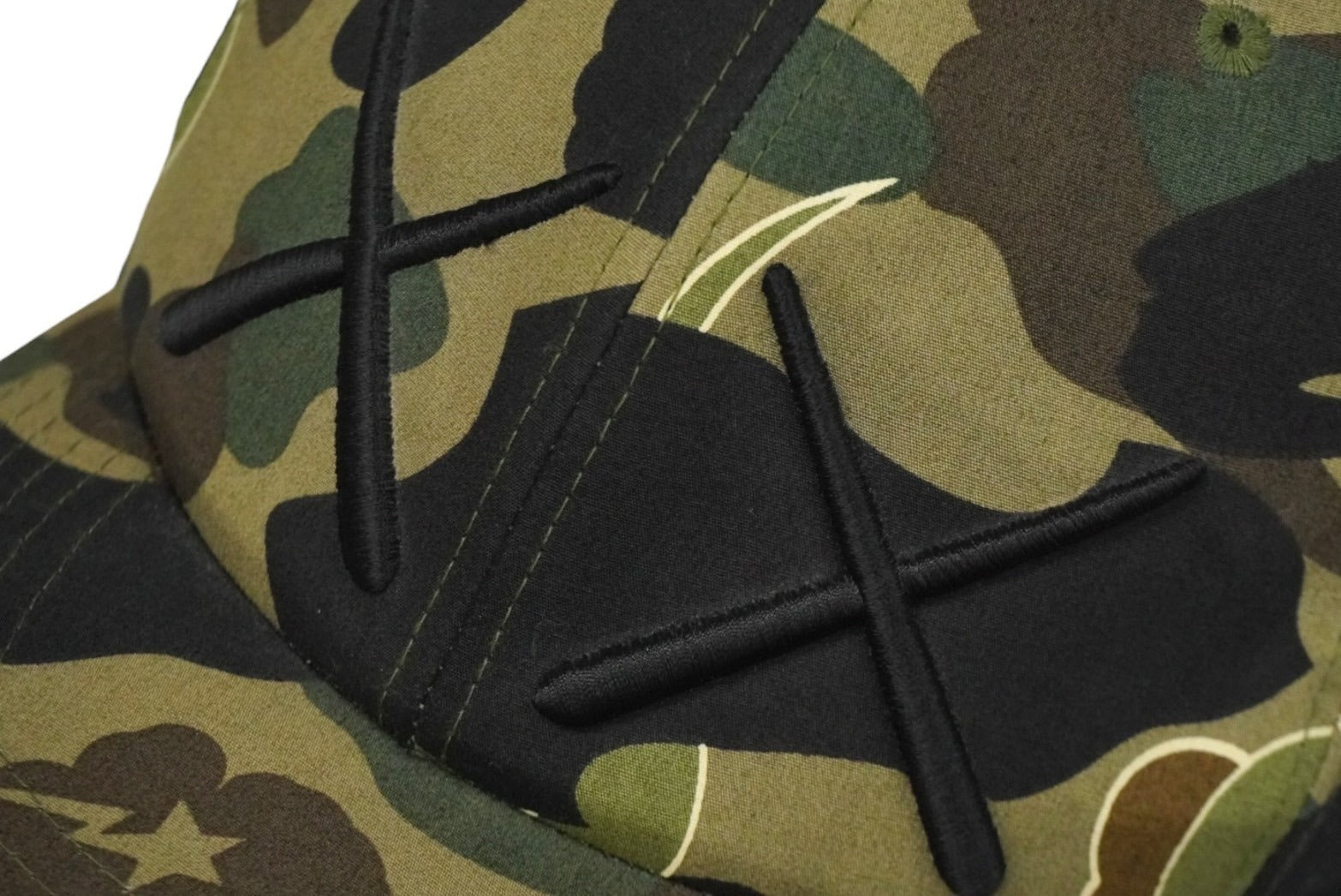 APEの定番モチーフである“1stカモ”を“KAWS(カウズ)”がアレンジし、フロントにXX刺繍をあしらったベースボールキャップです。
