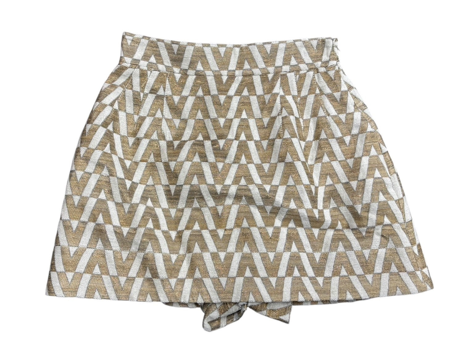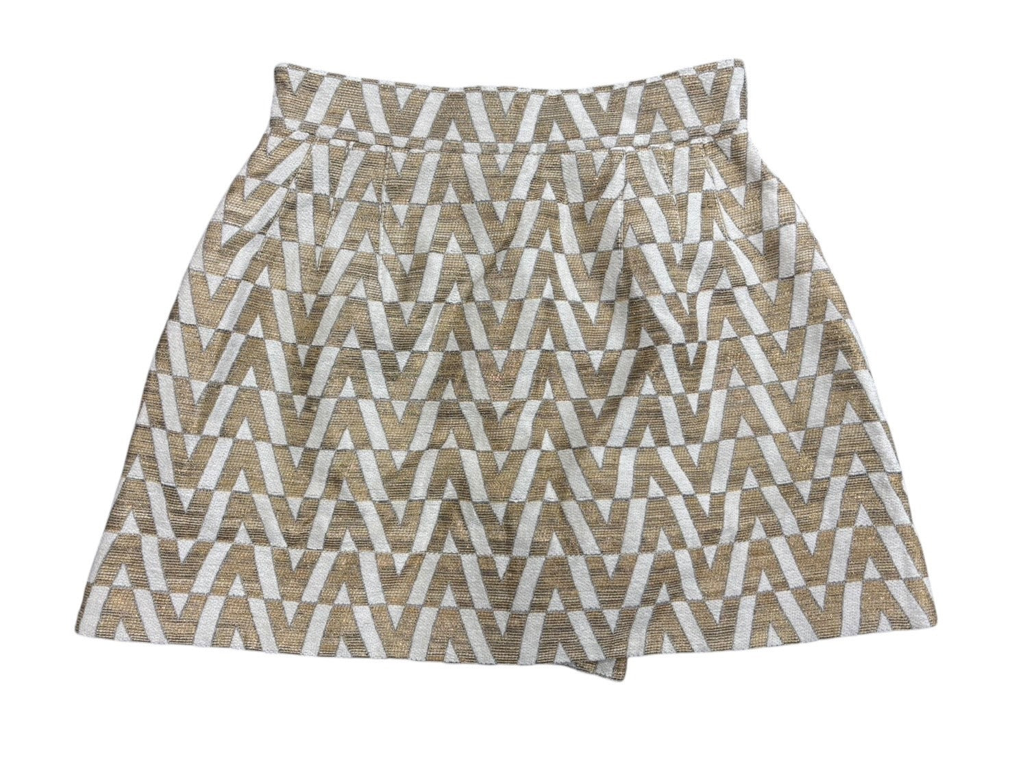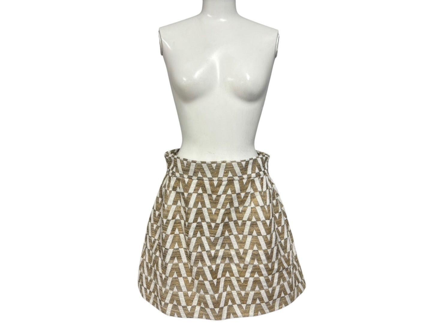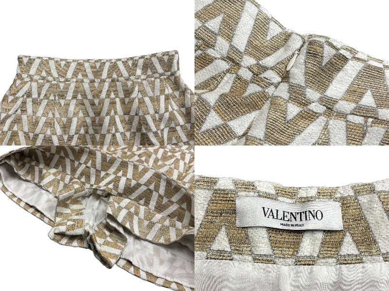 新品未使用 Valentino ヴァレンティノ VLOGO ミニスカート RB3RF0Z14FY ゴールド ホワイト サイズ6 中古 4b008803