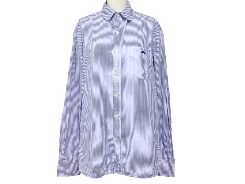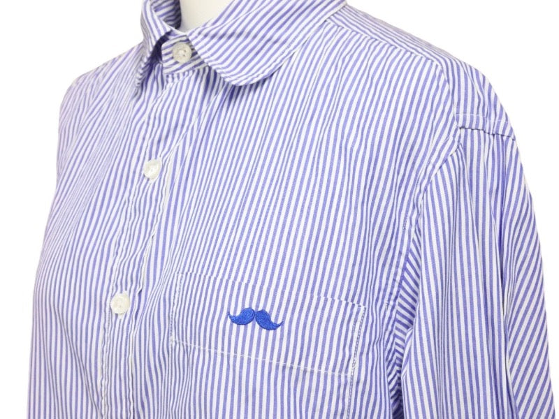 Mr BATHING APE ミスターベイシングエイプ BAPE シャツ 長袖 ストライプ ブルー 刺繍 サイズM メンズ 良好 26199