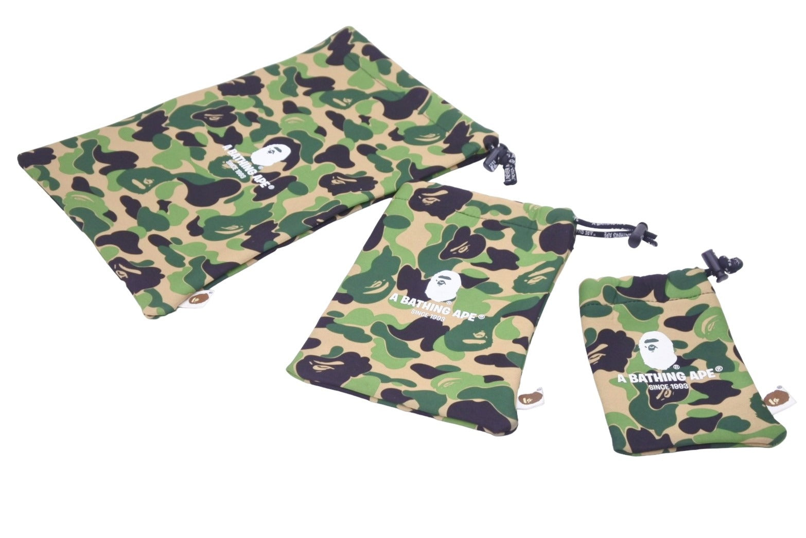 A BATHING APE アベイシングエイプ ABC POUCH 3P SET ポーチ3点セット GREEN グリーン 緑 1F70182143 中古 35276