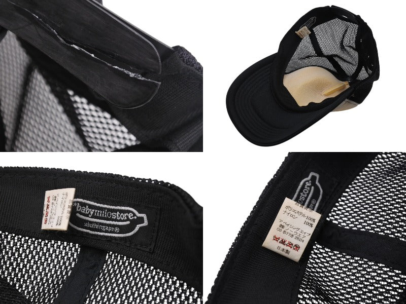 A BATHING APE アベイシングエイプ BABY MILO STORE ベイビーマイロストア BAPE キャップ 帽子 ホワイト ブラック 良品 中古 4b001421