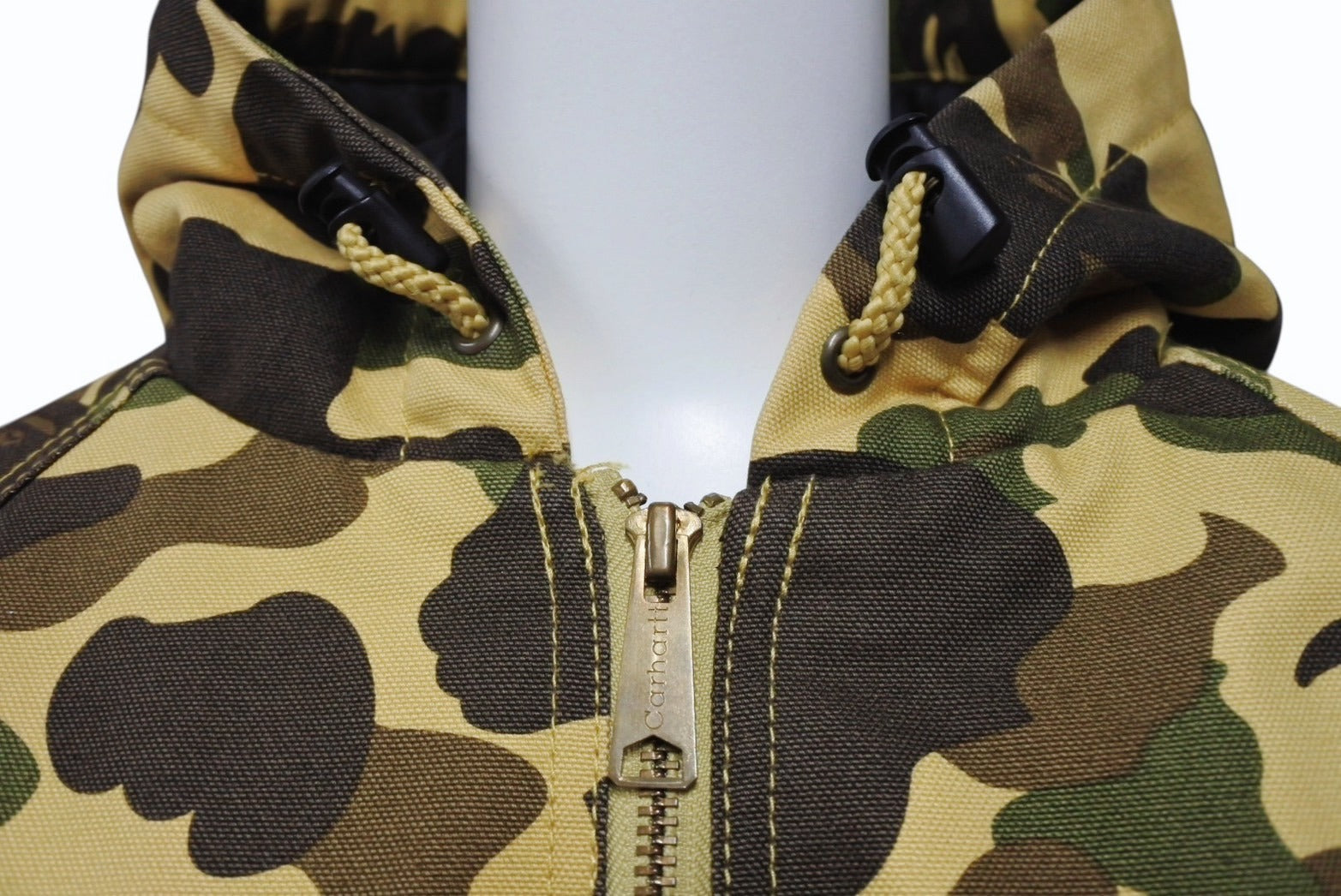 極美品 A BATHING APE アベイシングエイプ × CARHARTT カーハート ACTIVE JACKET アクティブジャケット 中綿 ACE-04703 サイズM イエローカモ