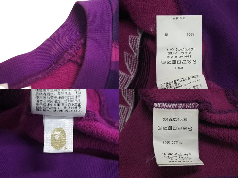 縫い目と刺繍部分に糸ほつれあり。表面に汚れあり。首元に糸ほつれと薄い日焼けあり。袖に汚れ有り。毛羽立ちあり。そのほか目立つ傷やダメージの少ない商品です。