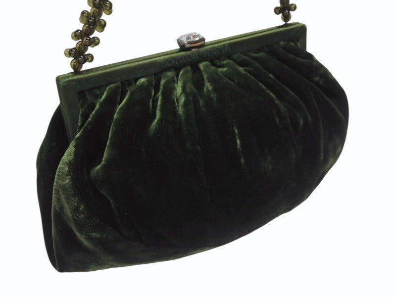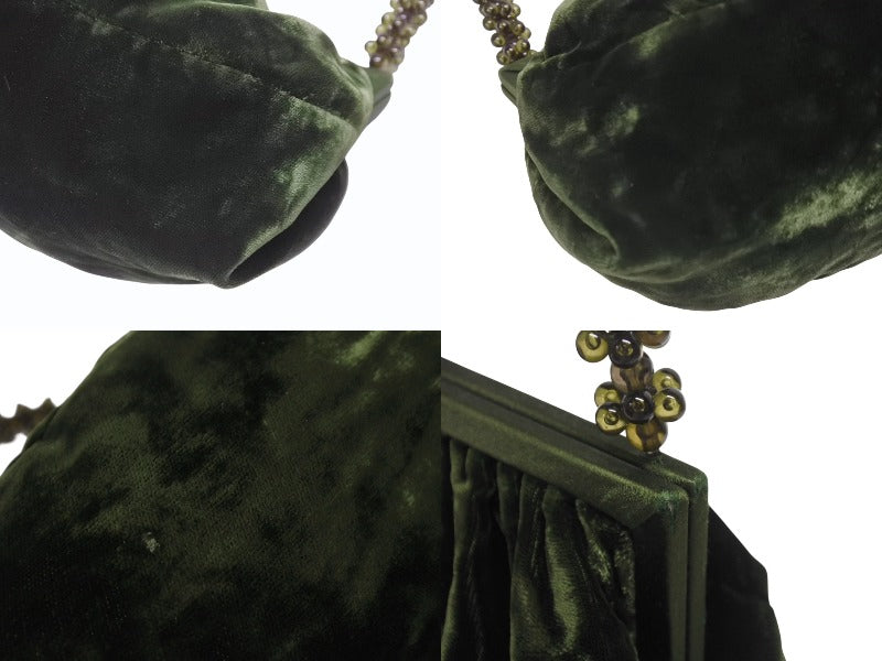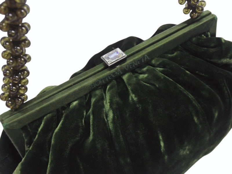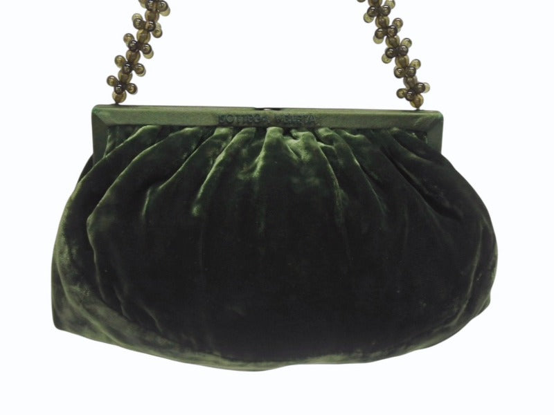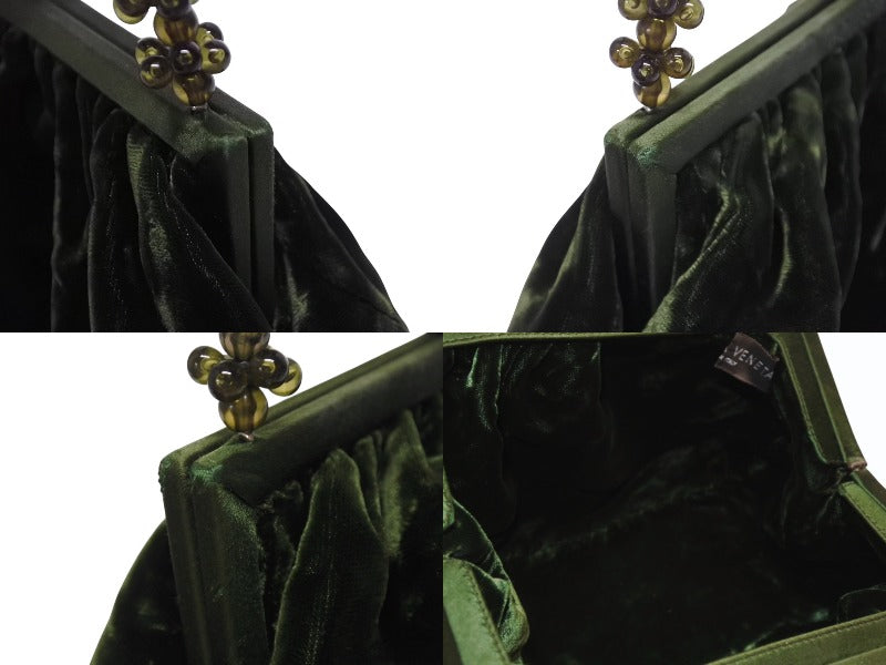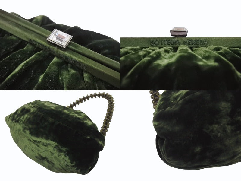 BOTTEGAVENETA ボッテガヴェネタ ハンドバッグ パーティーバッグ がま口 ベルベット グリーン 美品 中古 4b005180