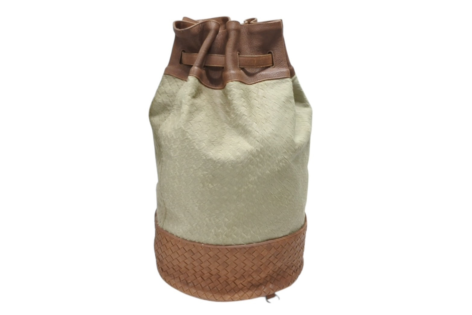 ハラコ素材のイントレチャートが可愛らしい巾着型ショルダーバッグです。