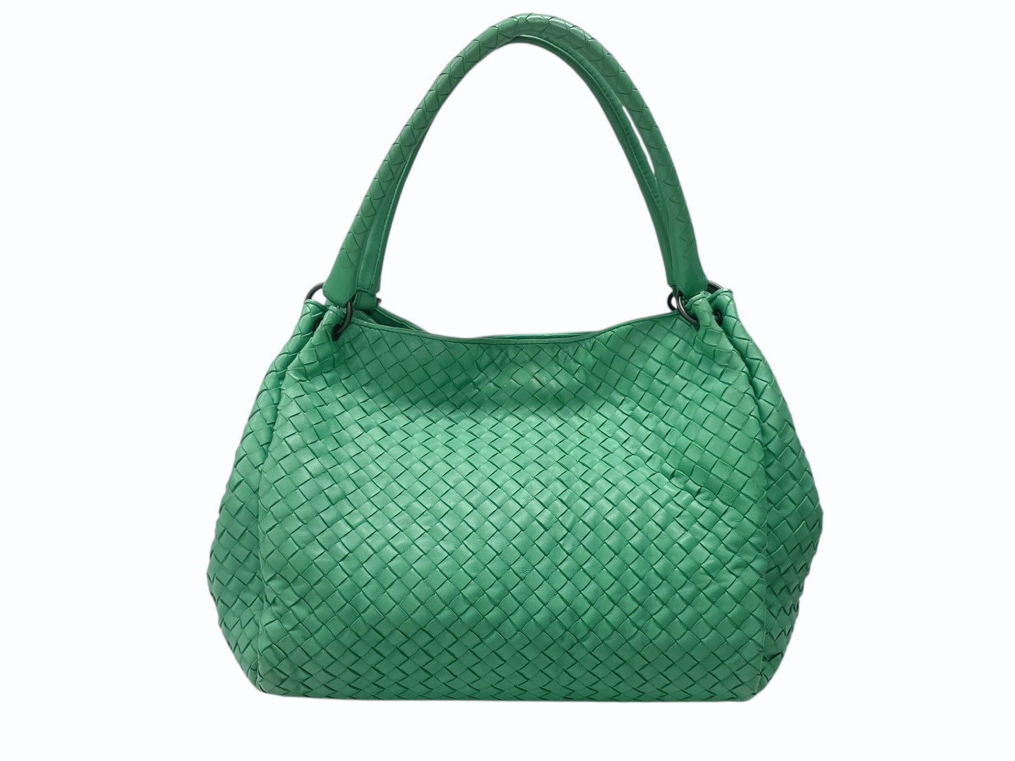 ボッテガヴェネタのメインカラー、ボッテガ・グリーンによりとても鮮やかなバックとなっております。