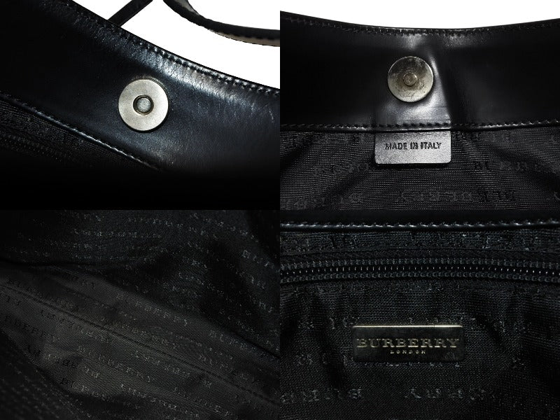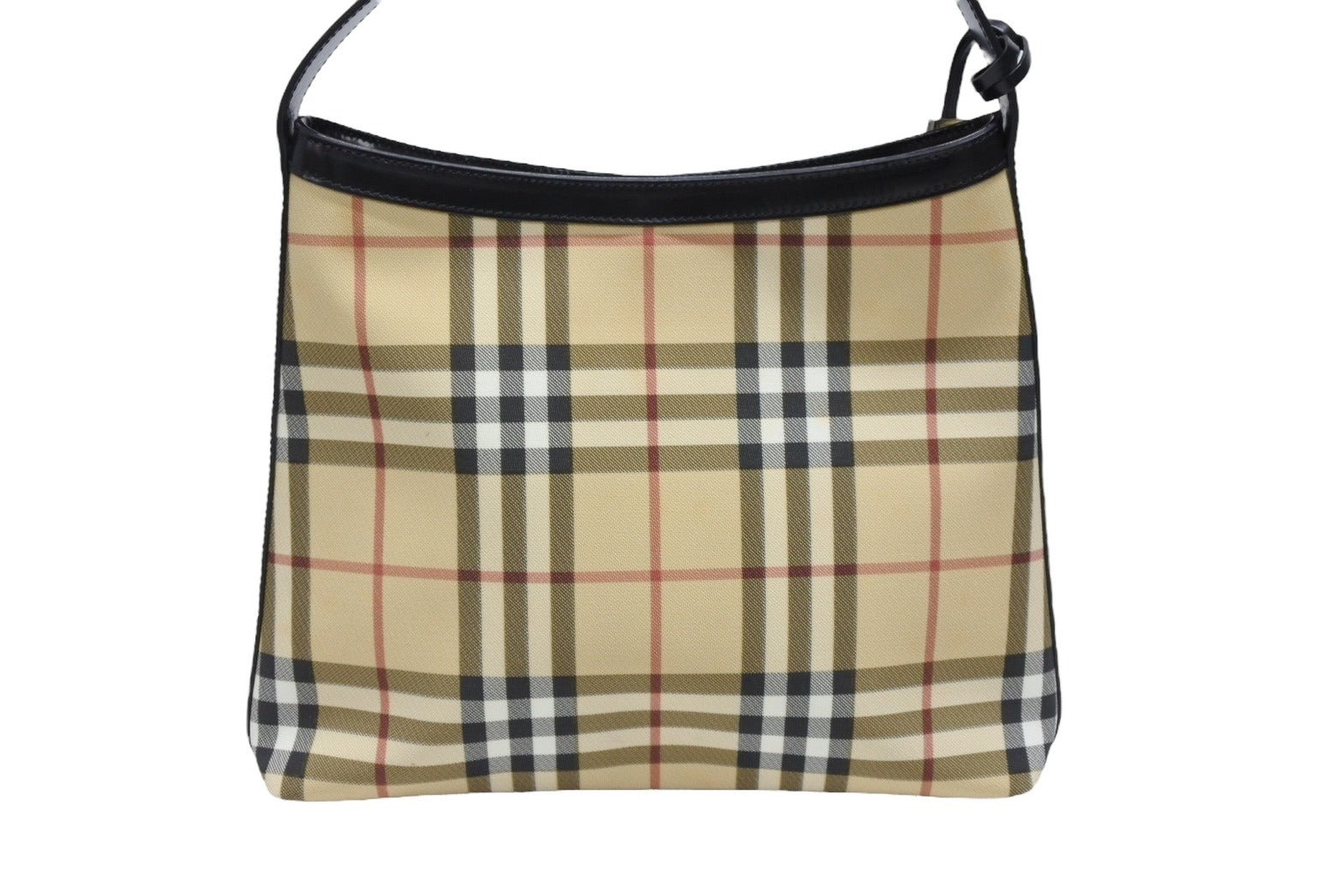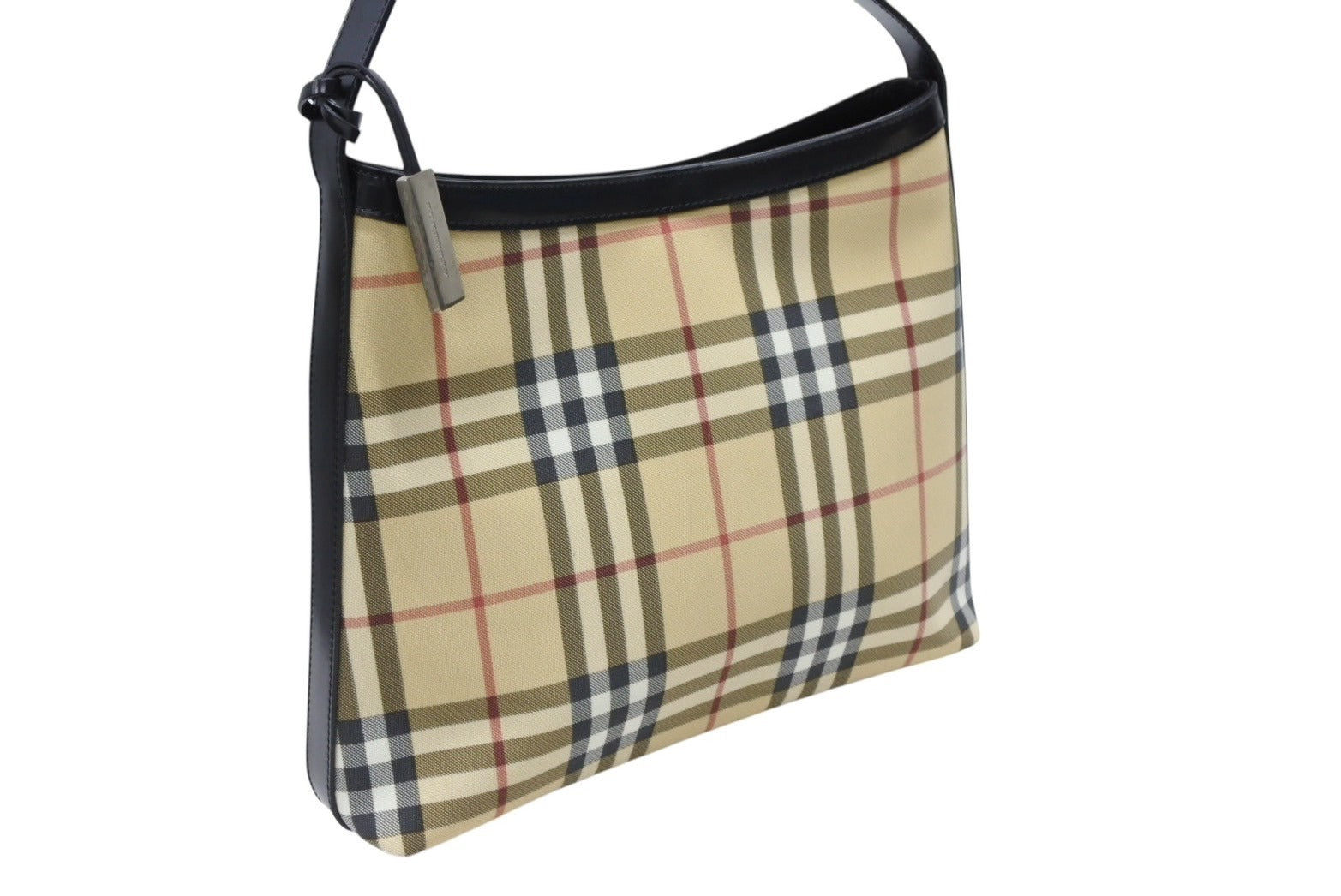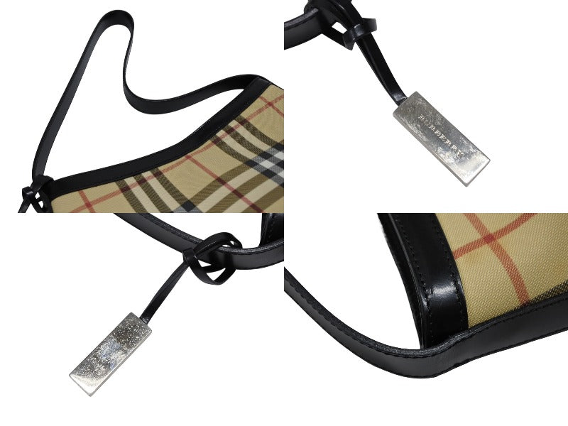 極美品 BURBERRY バーバリー ノヴァチェック 2000年代 ワンショルダーバッグ PVC レザー ベージュ ブラック シルバー金具 中古 4b005309