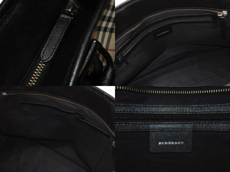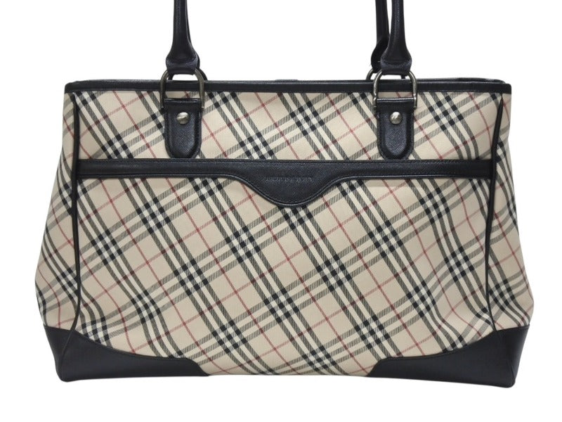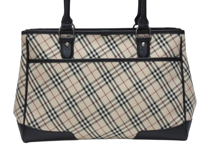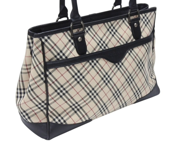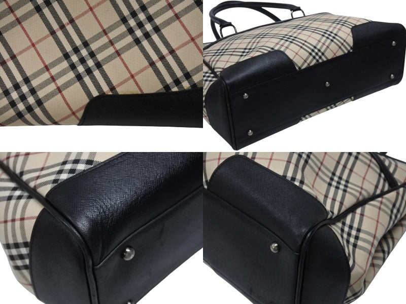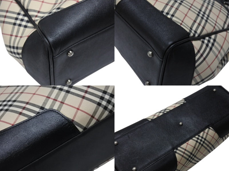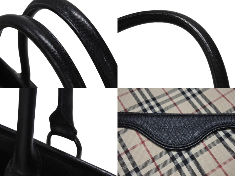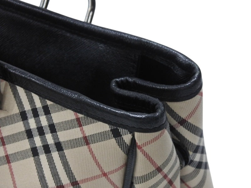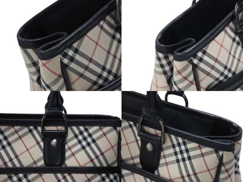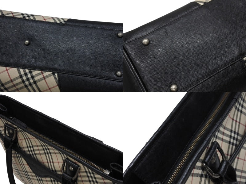 BURBERRY バーバリー ハンドバッグ トートバッグ ノバチェック レザー キャンバス ベージュ 美品 中古 4b005315