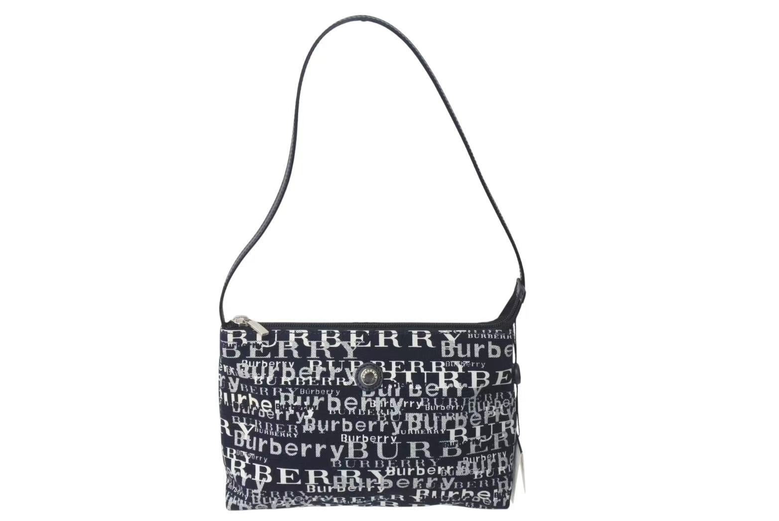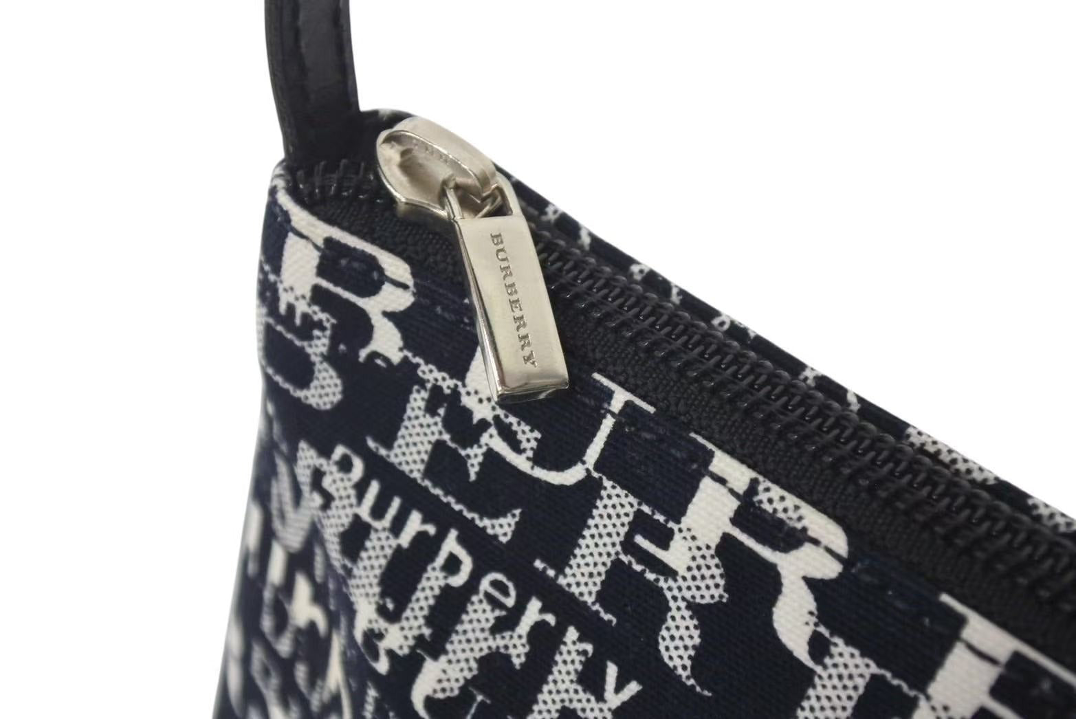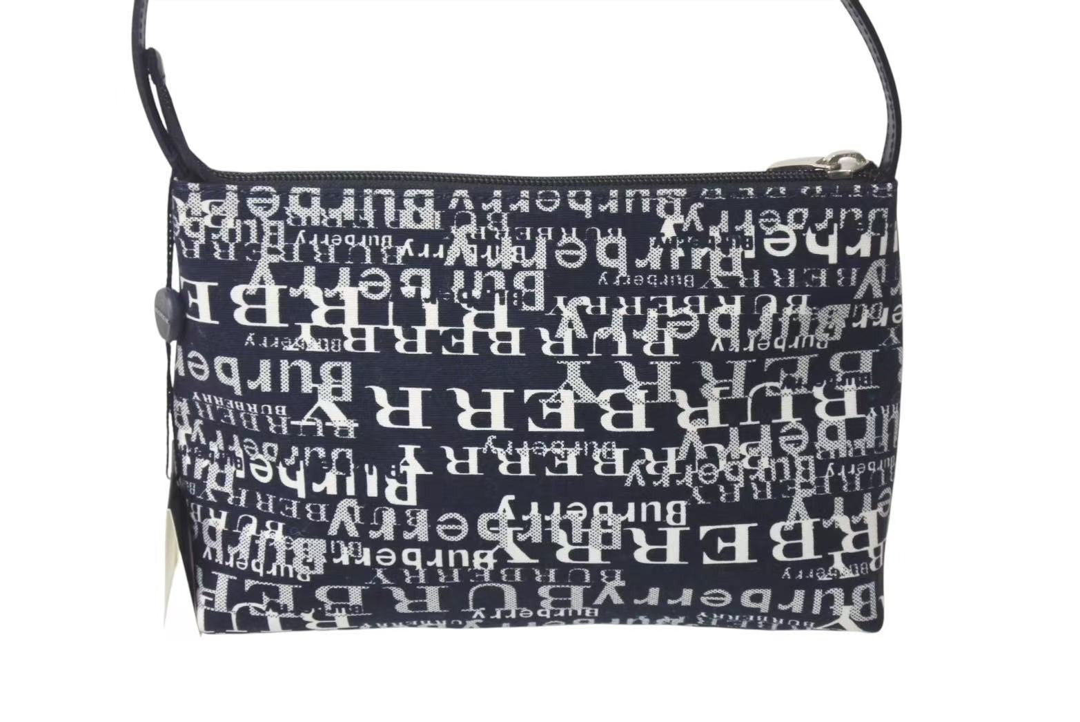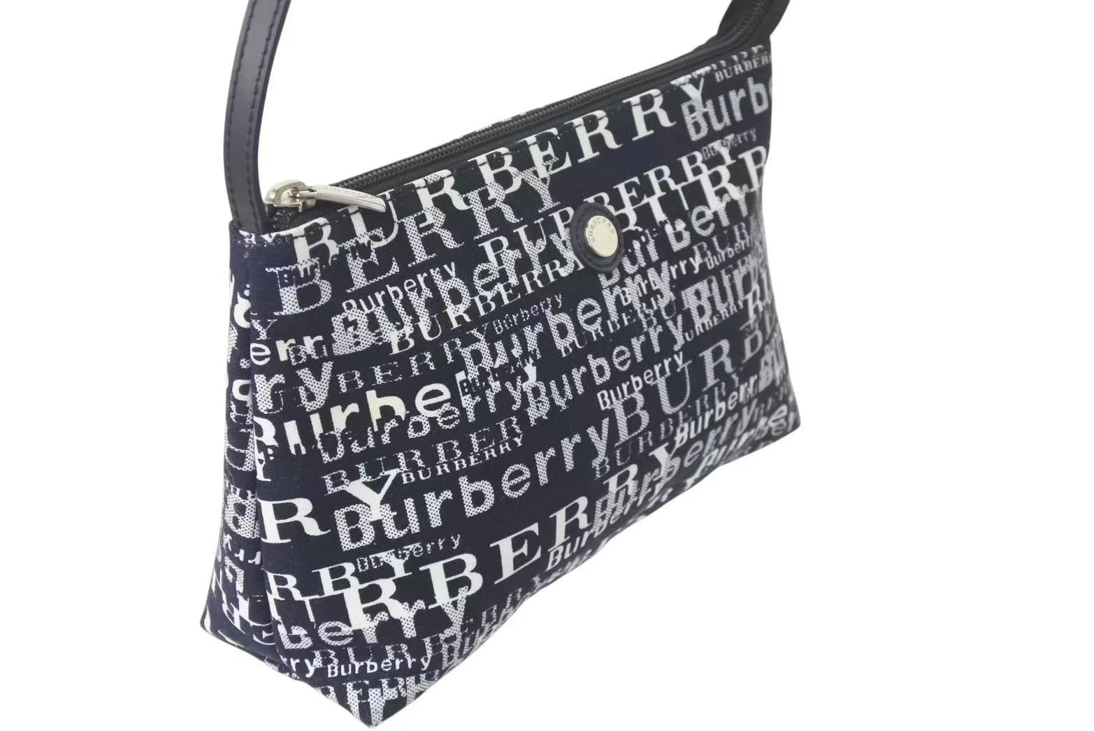 新品未使用品 BURBERRY バーバリー ワンショルダーバッグ 総柄 T-03-1 ブラック ホワイト シルバー金具 中古 4c073069