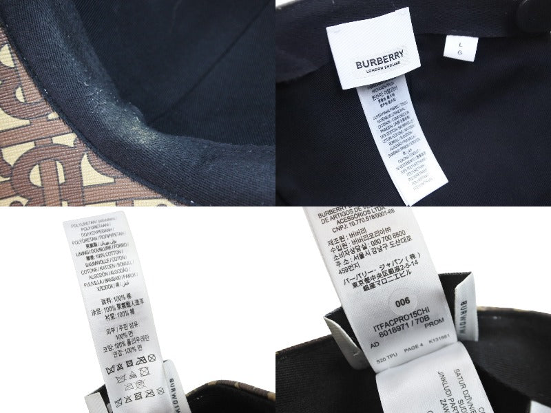 モノグラム柄が描かれたバーバリーのキャップです。コーディネートのワンポイントにおススメのアイテムです