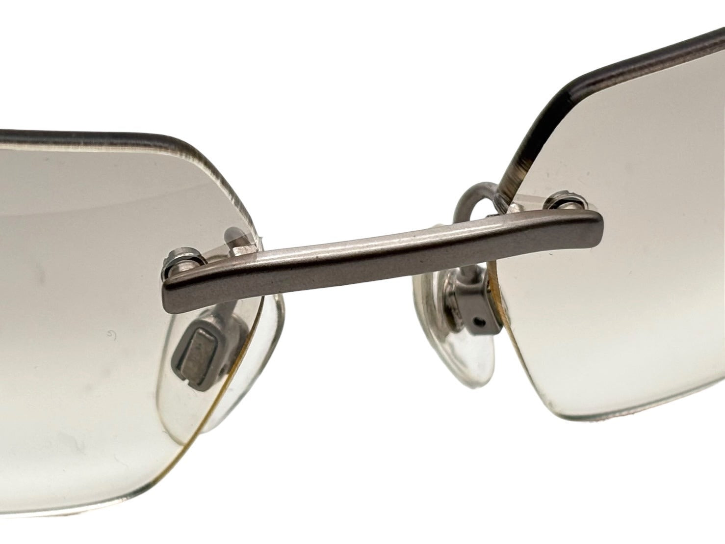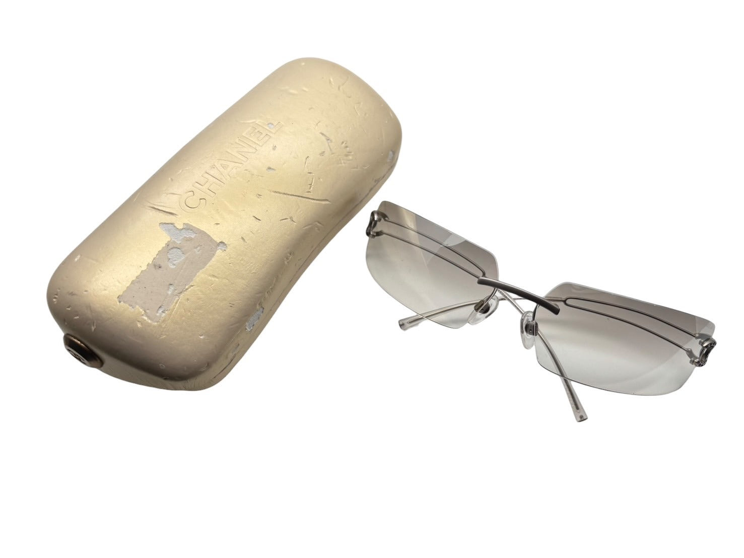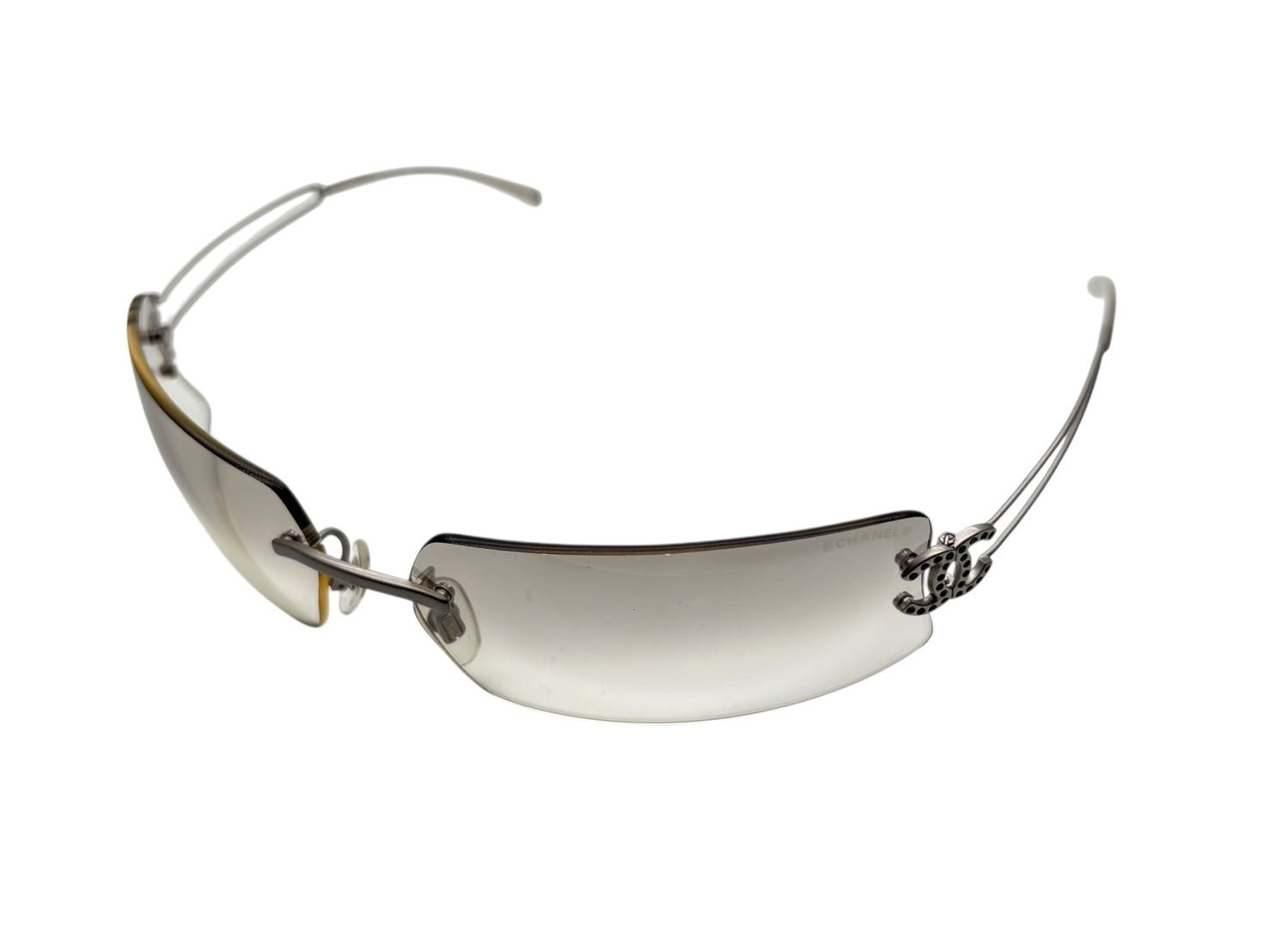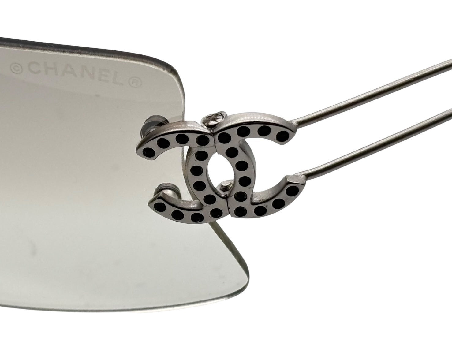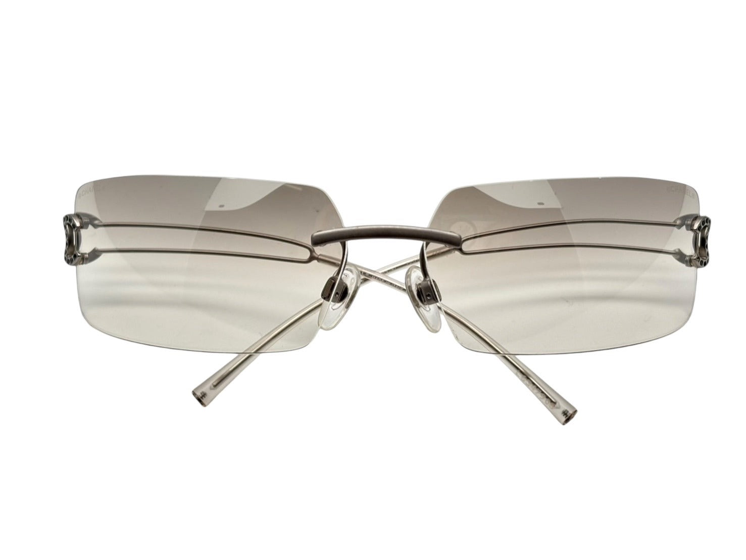 ラインストーンがあしらわれたココマークがアクセントになったリムレス仕様のサングラスです。