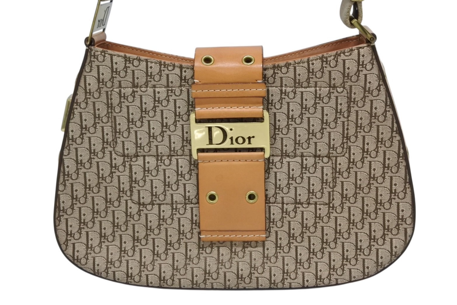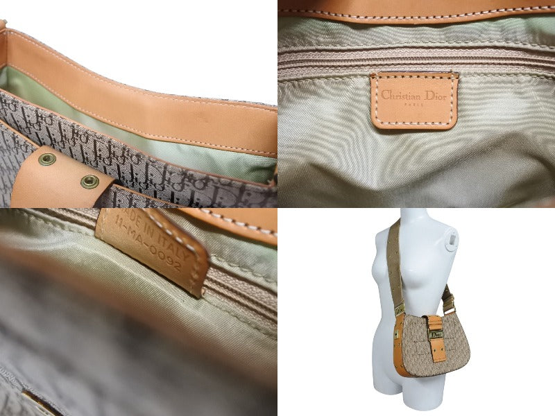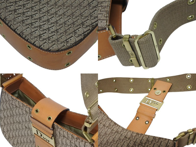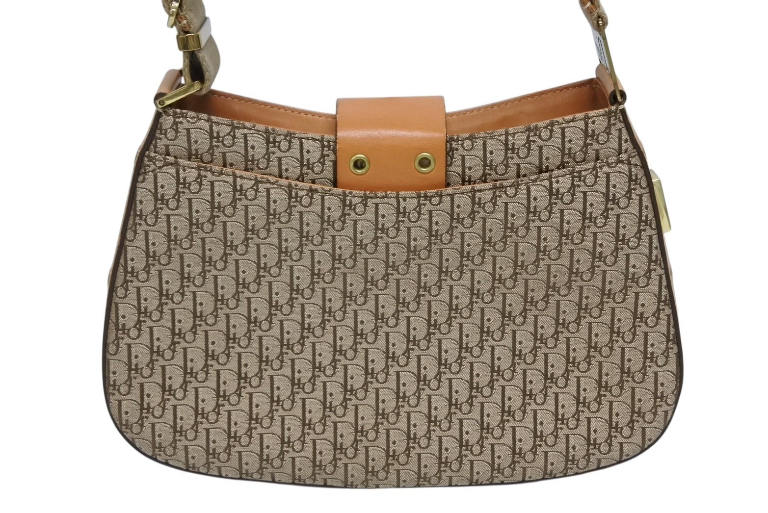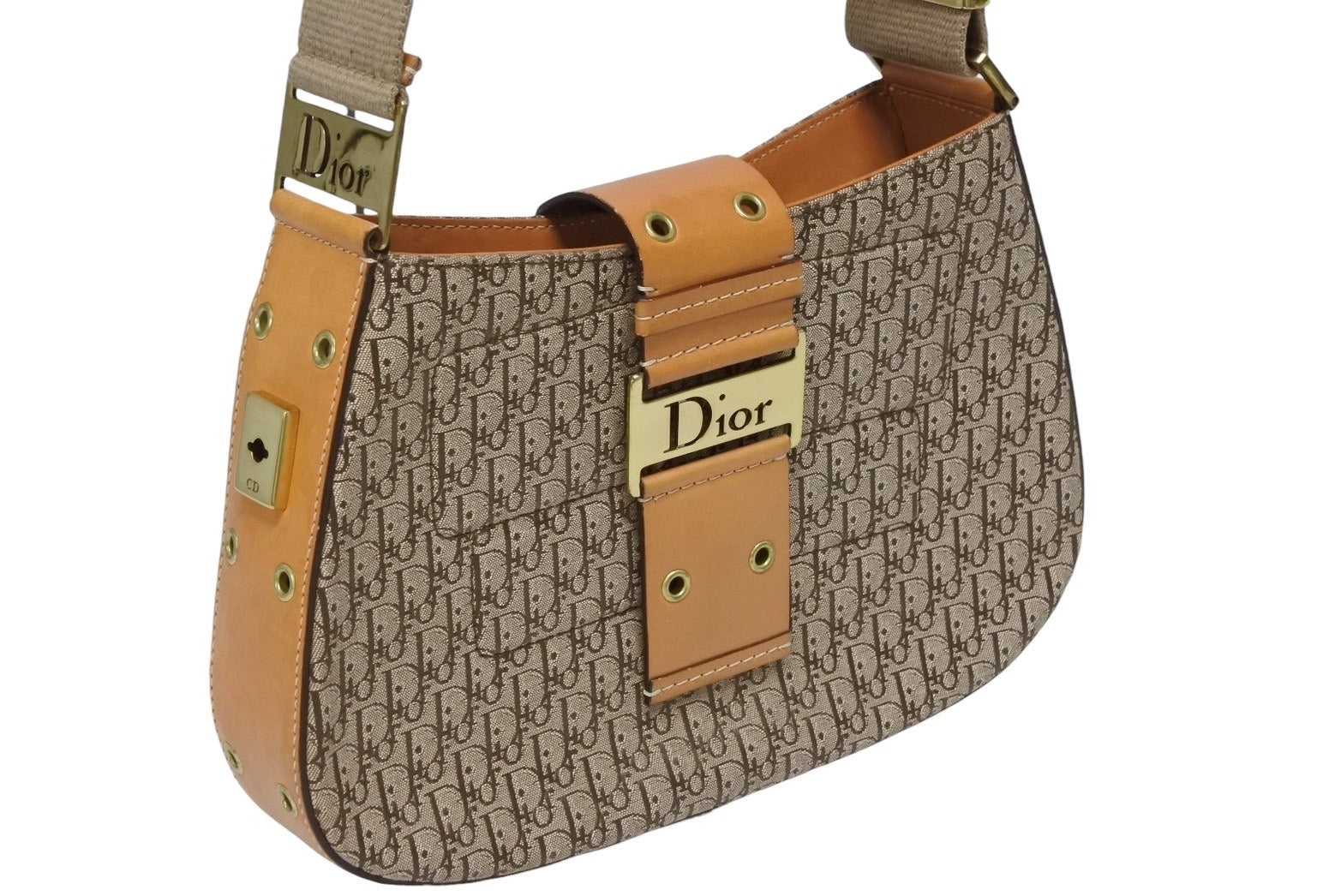 CHRISTIAN DIOR クリスチャンディオール ワンショルダーバッグ ストリートシック トロッターライン ベージュ ブラウン ゴールド金具 美品 中古 4b009868