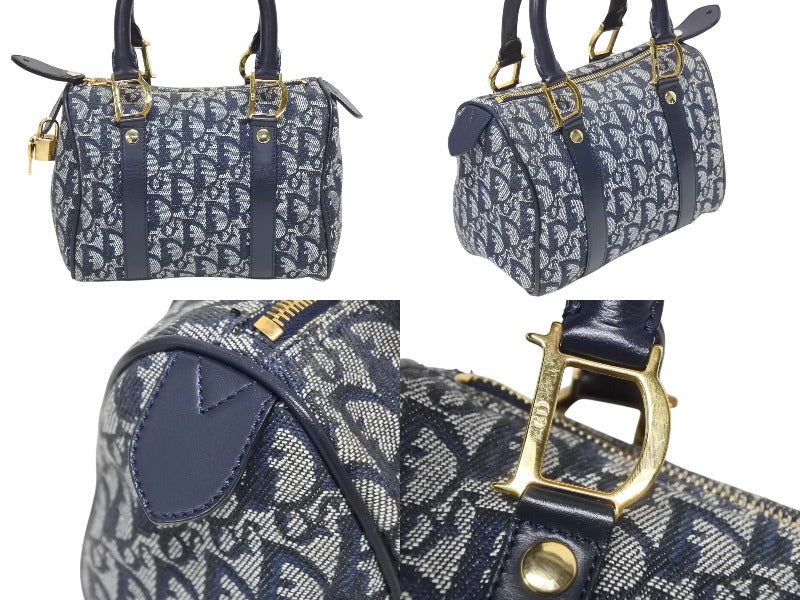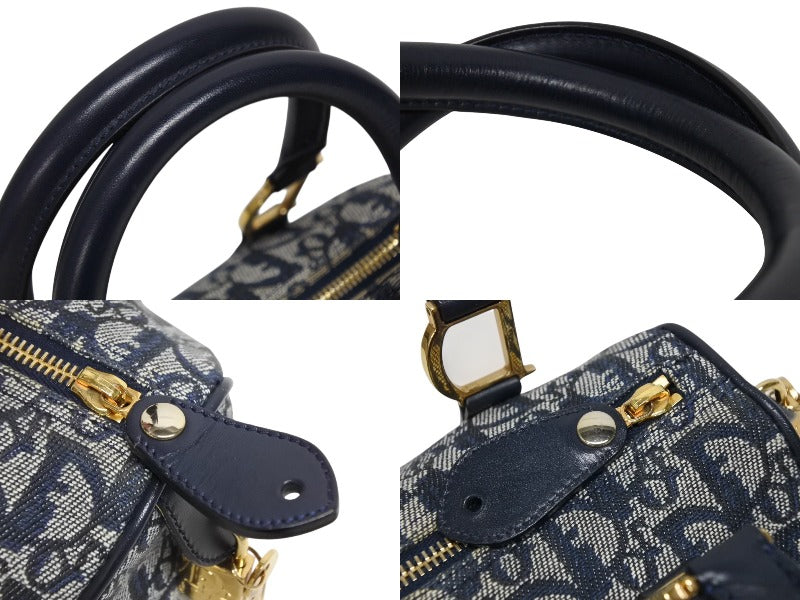 極美品 Christian Dior ディオール ハンドバッグ ミニボストン トロッター ネイビー スピーディ 20cm 中古 4b009870
