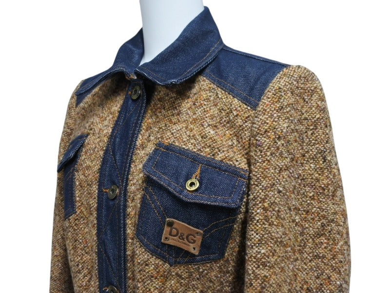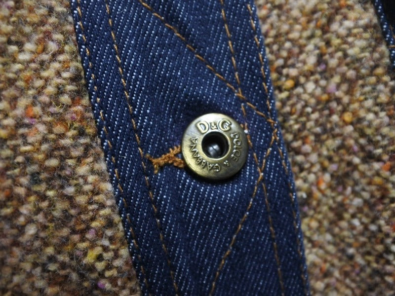 イタリア製のツイードとデニムのドッキングがお洒落で高級感溢れる一着です。