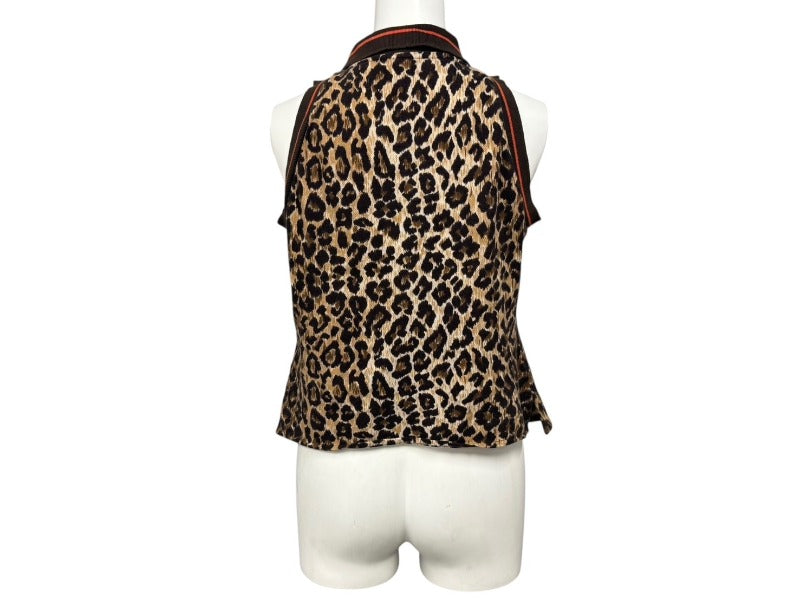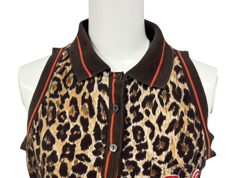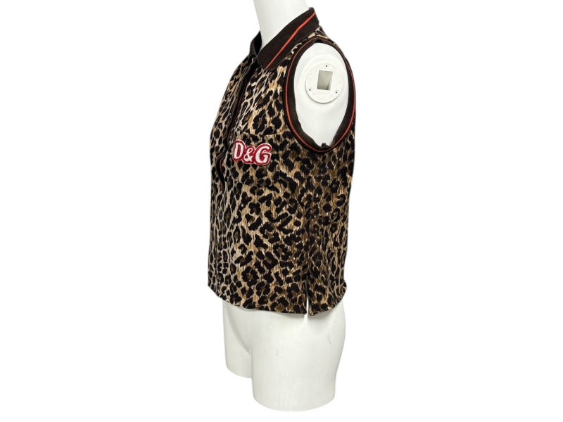 DOLCE&GABBANA ドルチェアンドガッバーナ ポロシャツ ノースリーブ D&Gロゴ レオパード ブラウン 美品 中古 4b004362