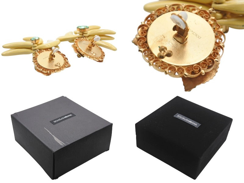 DOLCE&GABBANA ドルチェアンドガッバーナ イヤリング 重量約66.8g バナナ ブラス ラタン ラインストーン 美品 中古 4b006324