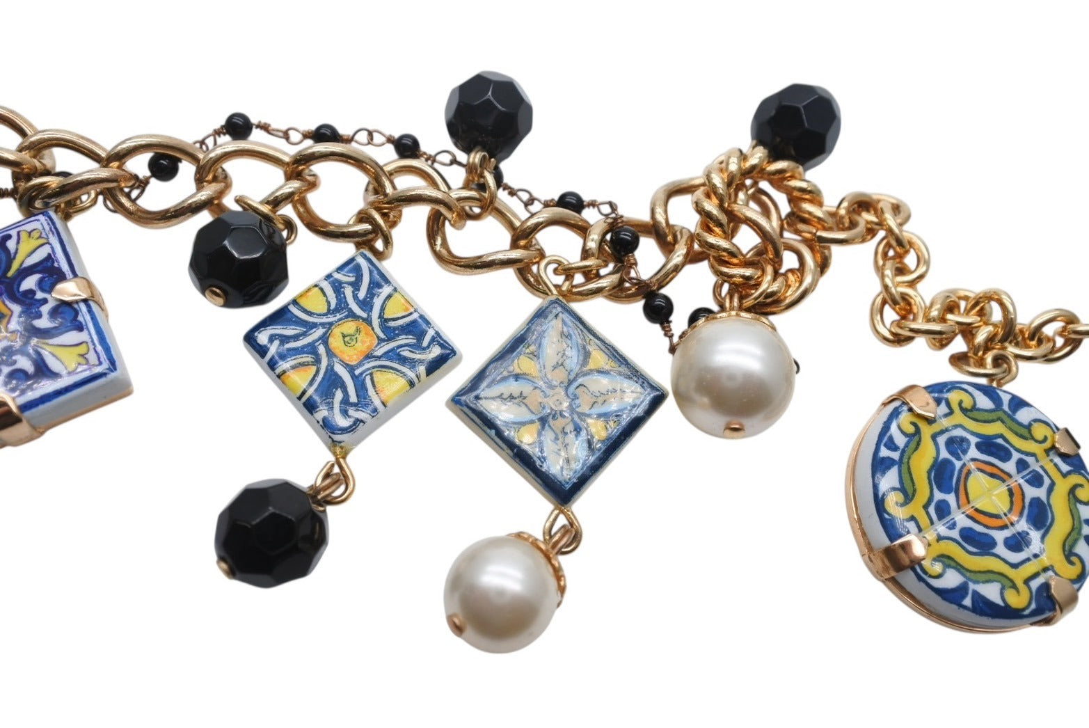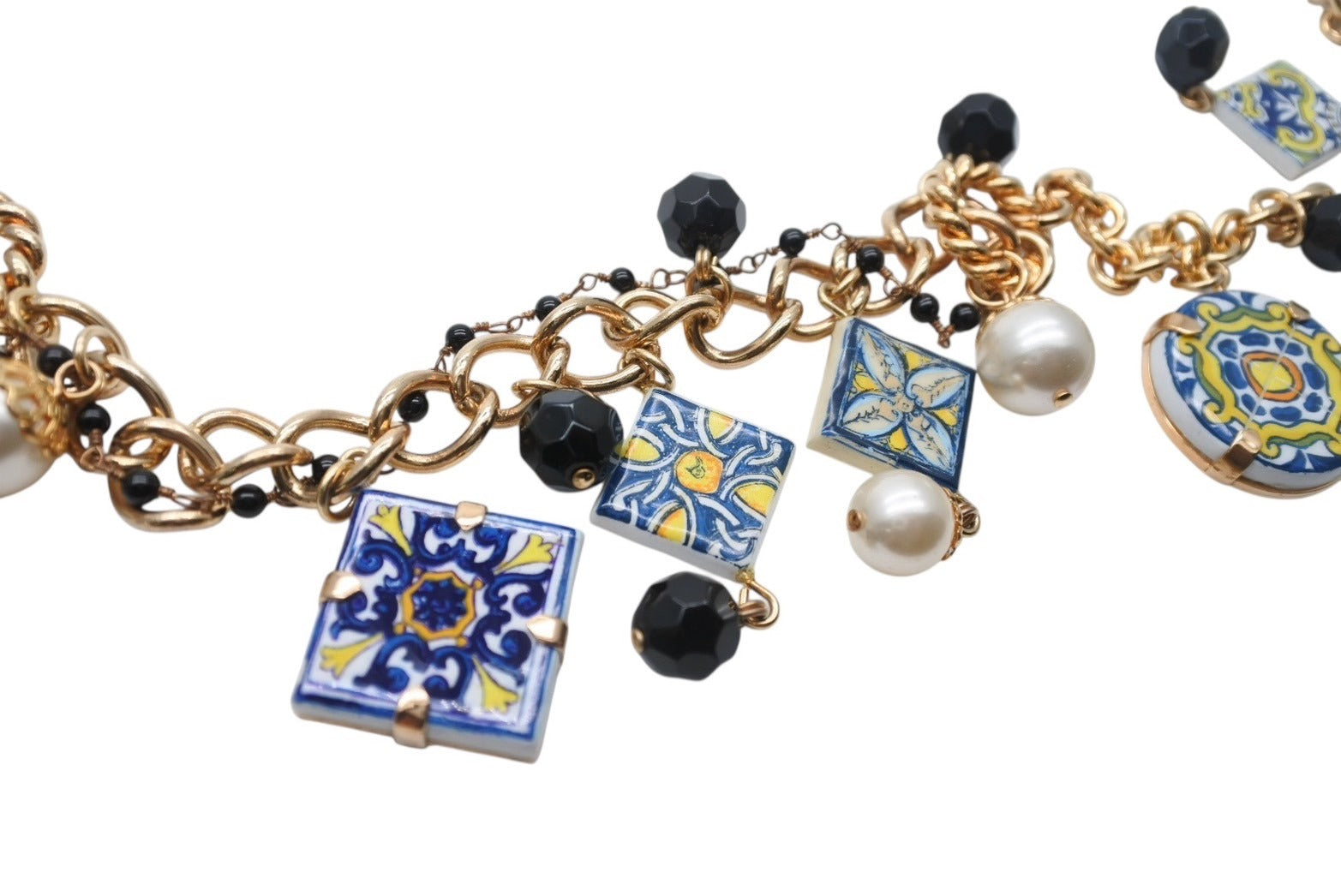 DOLCE&GABBANA ドルチェアンドガッバーナ ネックレス 重量約177.9g メキシカンタイル調 ブラス テラコッタ 美品 中古 4b006329