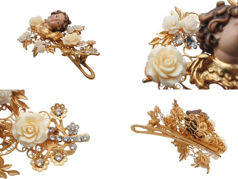 DOLCE&GABBANA ドルチェアンドガッバーナ ヘアクリップ ダッカール 重量約67.1g ブラス ラインストーン エンジェル 薔薇 美品 中古 4b006335