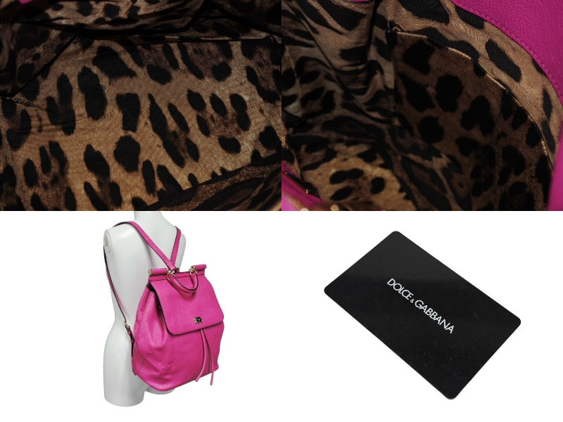 DOLCE&GABBANA ドルチェアンドガッバーナ リュック デイパック イタリア製 レザー ピンク ゴールド金具 美品 中古 4b007482
