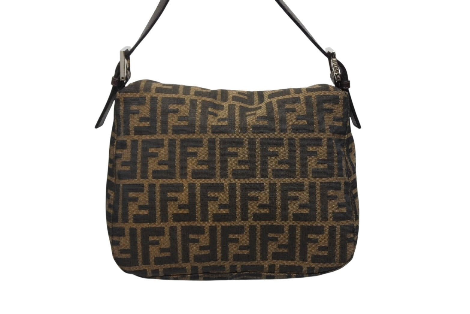 FENDI フェンディ マンマバケット ワンショルダーバッグ 26425 ズッカ柄 ブラウン キャンバス レザー シルバー金具 美品 中古 4b009113