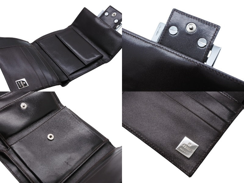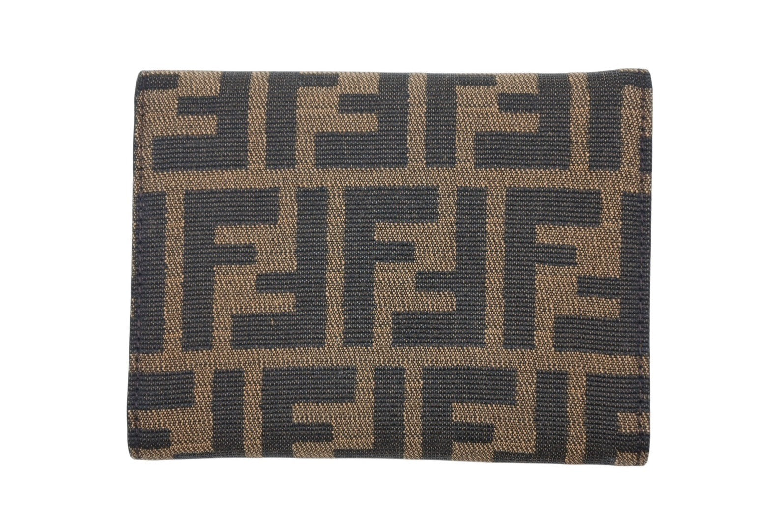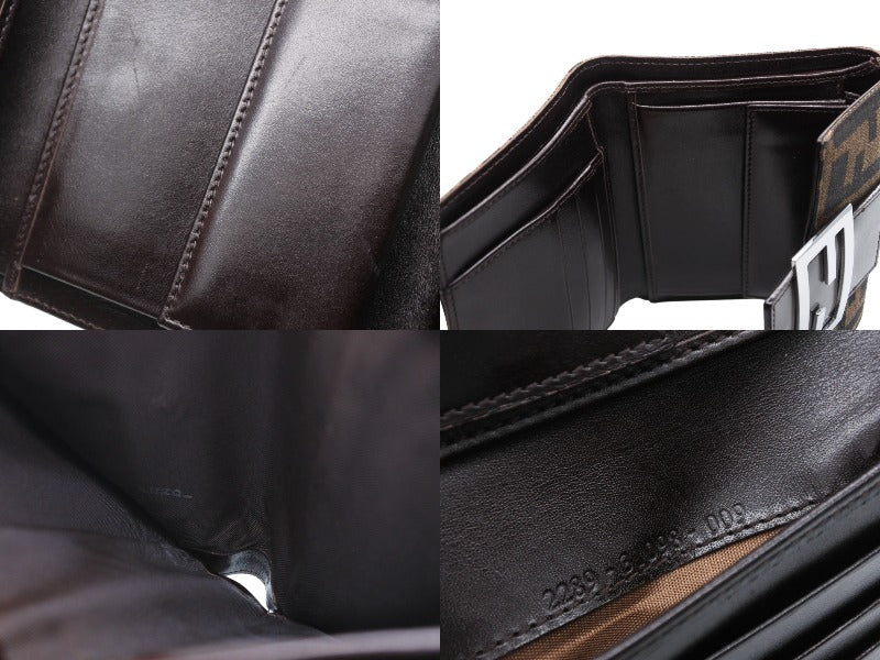 FENDI フェンディ 三つ折り財布 コンパクト財布 ズッカ柄 ナイロン キャンバス レザー ダークブラウン 美品 中古 4b009180