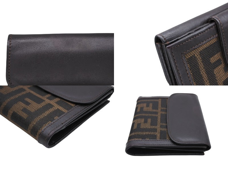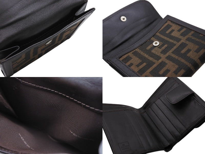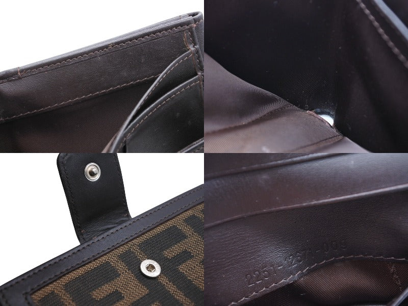 FENDI フェンディ ズッカ柄 二つ折り財布 コンパクトウォレット イタリア製 キャンバス レザー ブラウン 美品 中古 4b009184