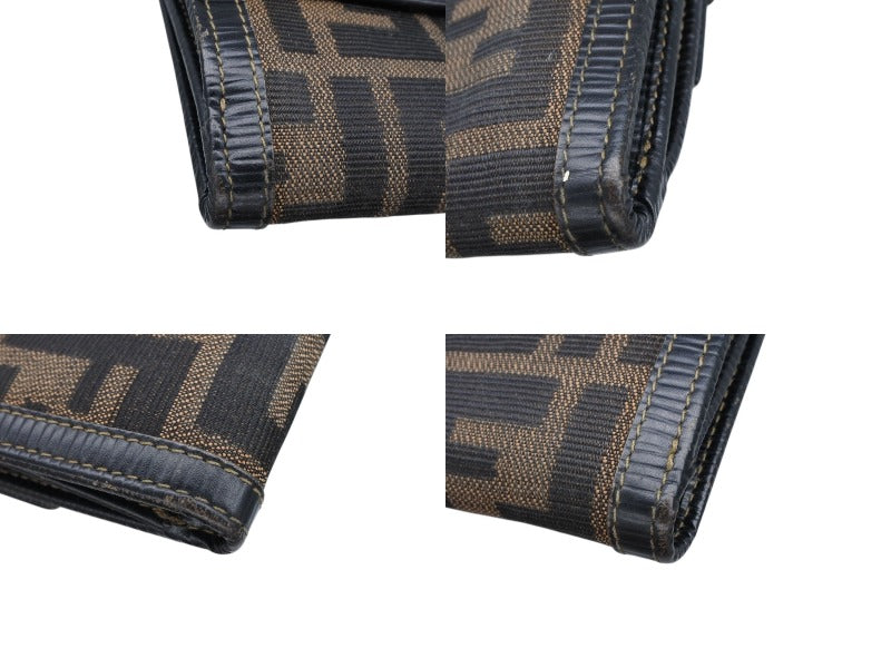 FENDI フェンディ ズッカ柄 三つ折り財布 コンパクトウォレット イタリア製 キャンバス レザー ブラウン ゴールド金具 美品 中古 4b009185