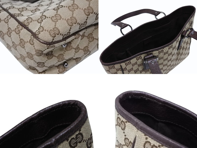 GUCCI グッチ GGキャンバス トートバッグ 113019 ベージュ ブラウン レザー シルバー金具 イタリア製 美品 中古 4b008290