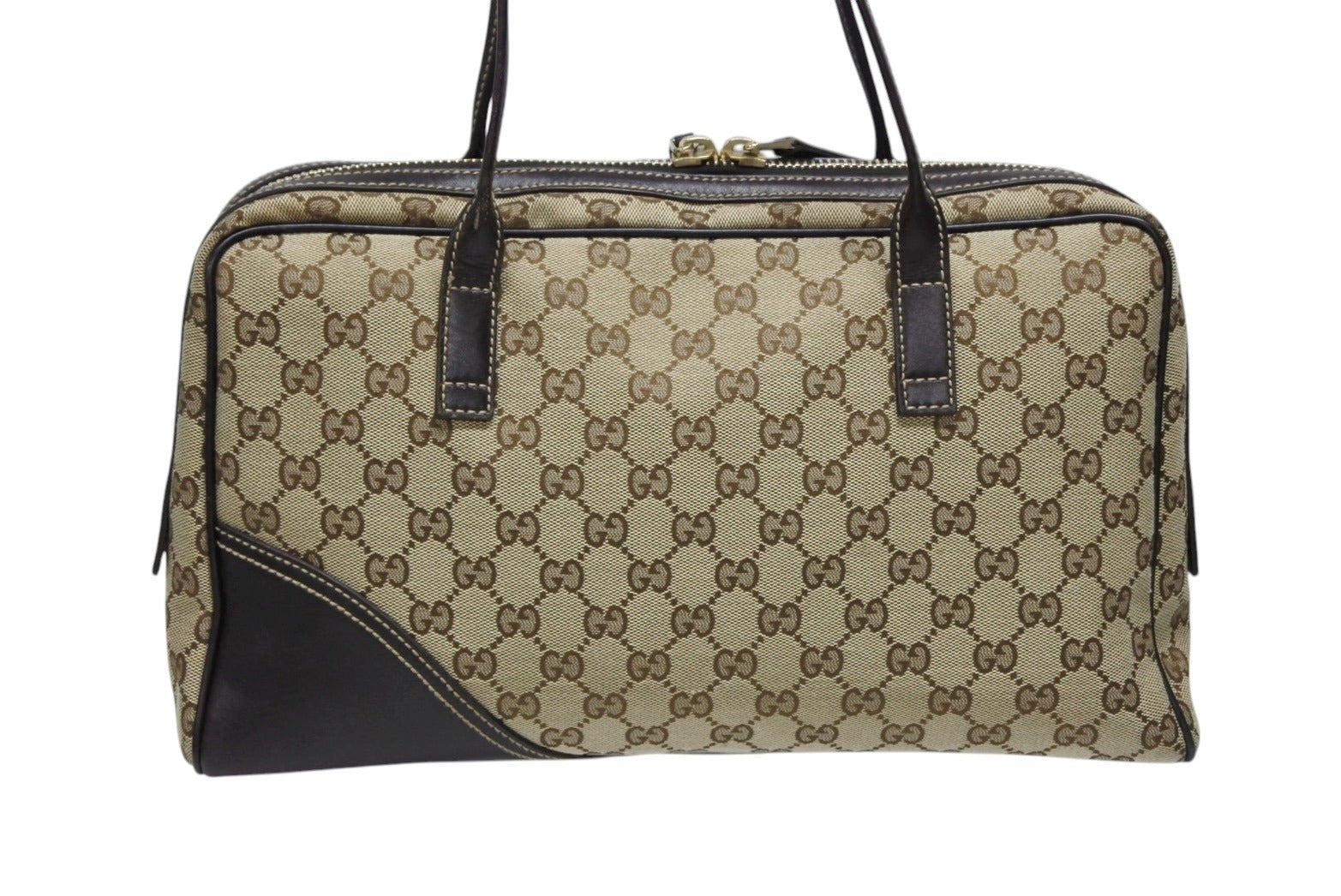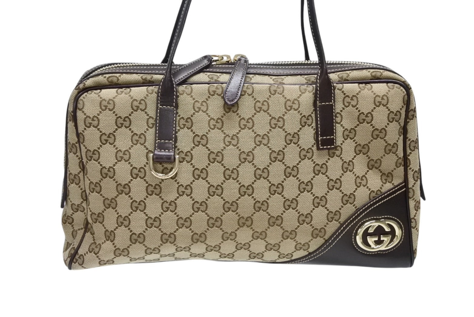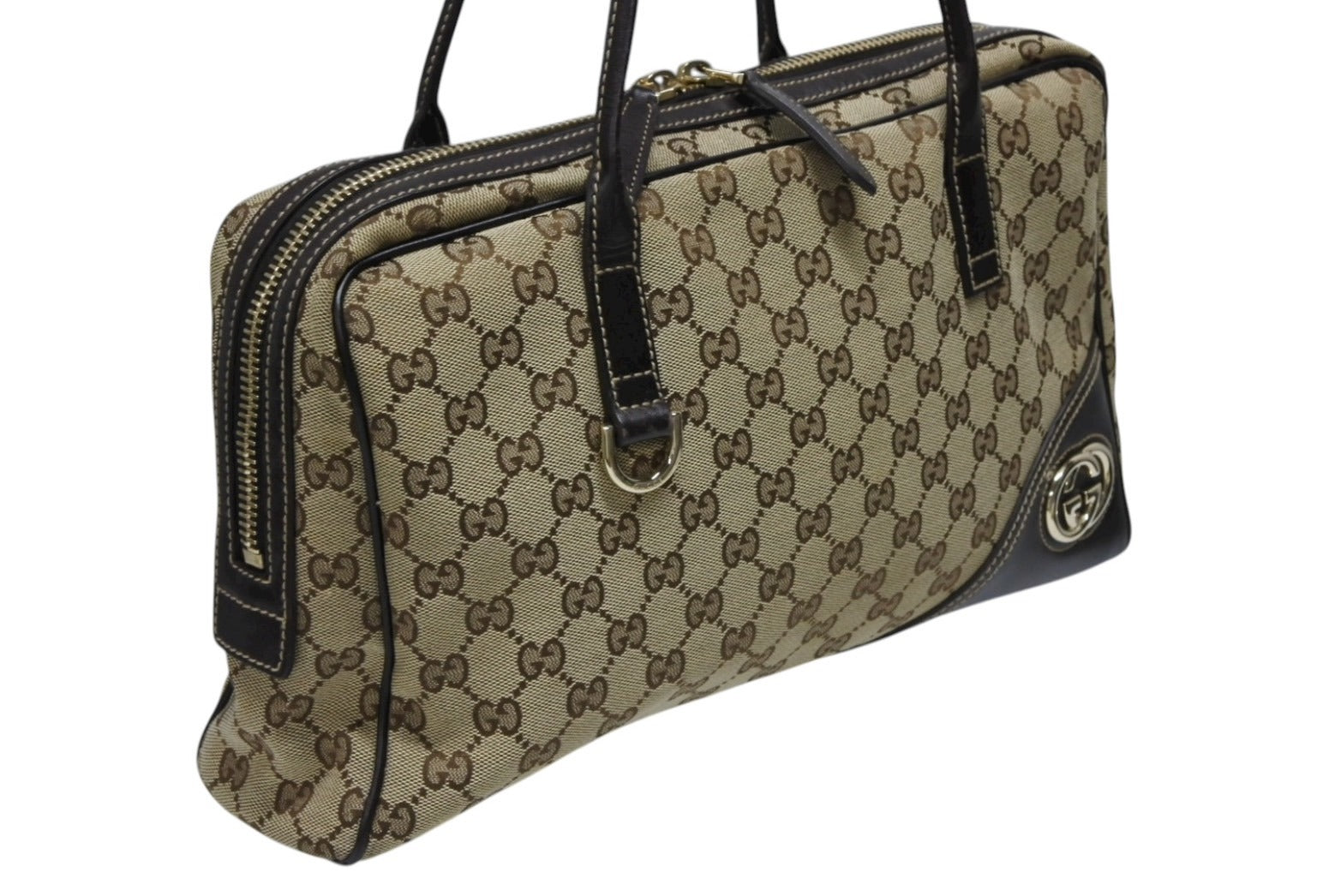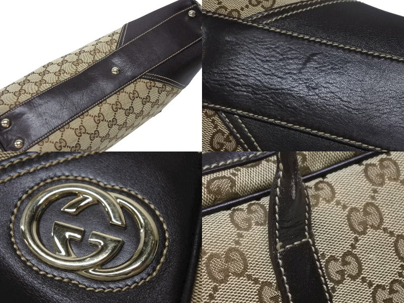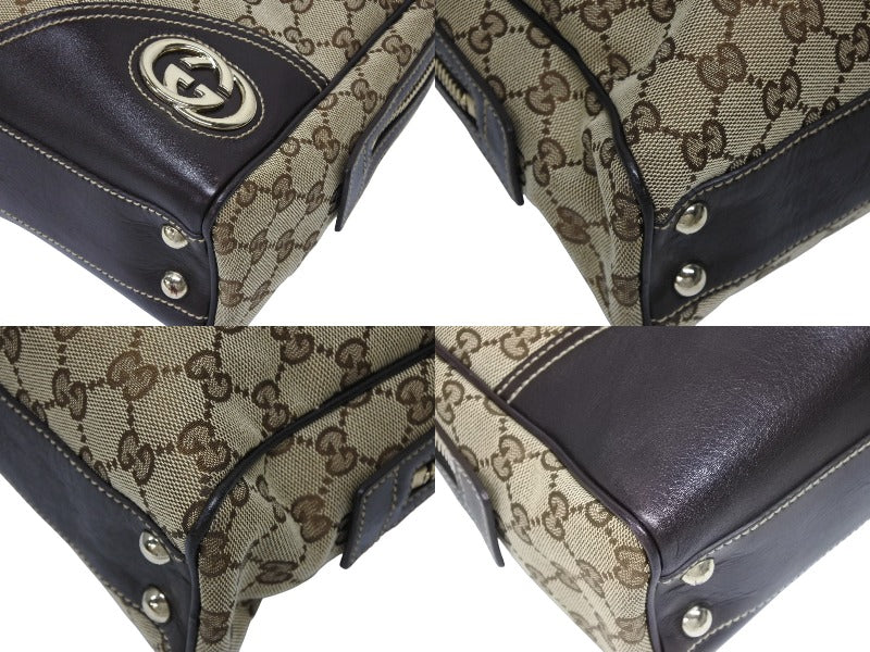 極美品 GUCCI グッチ ニューブリット GGキャンバス ハンドバッグ 169971 ベージュ ブラウン ゴールド金具 中古 4b008579